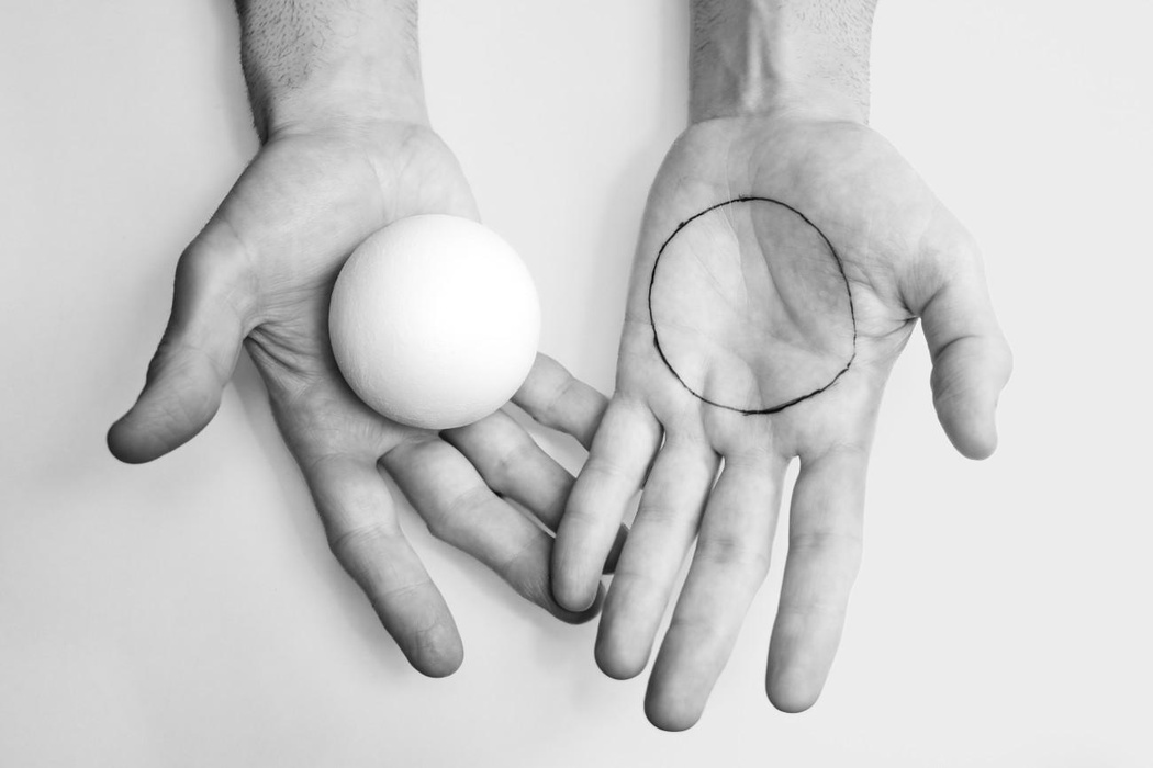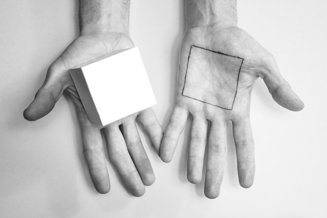 Performance invisible n° 256. Confundir la derecha y la izquierda. Recreación de Giovanni Anselmo. Lato destro [lado derecho]. 1970. Crédito de la foto: Martin Vinette. Retoque fotográfico: Charles-Étienne Lebrun. 5 de octubre de 2025