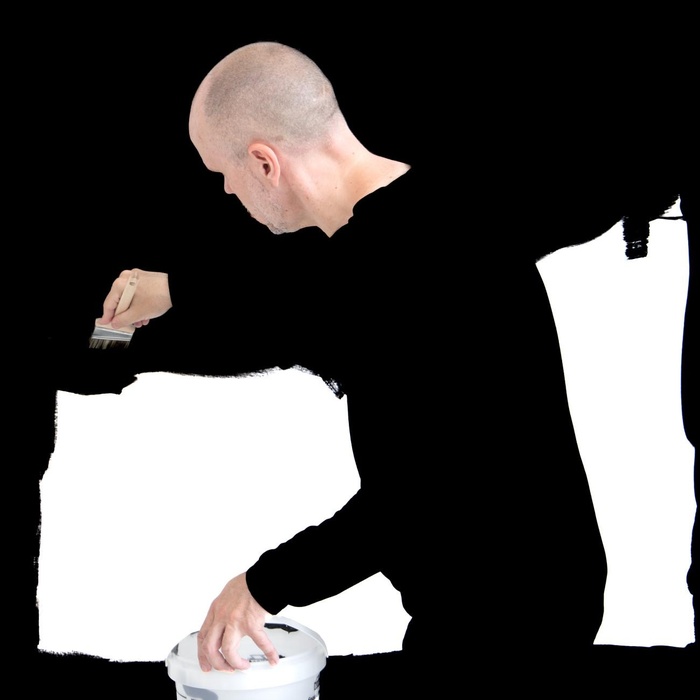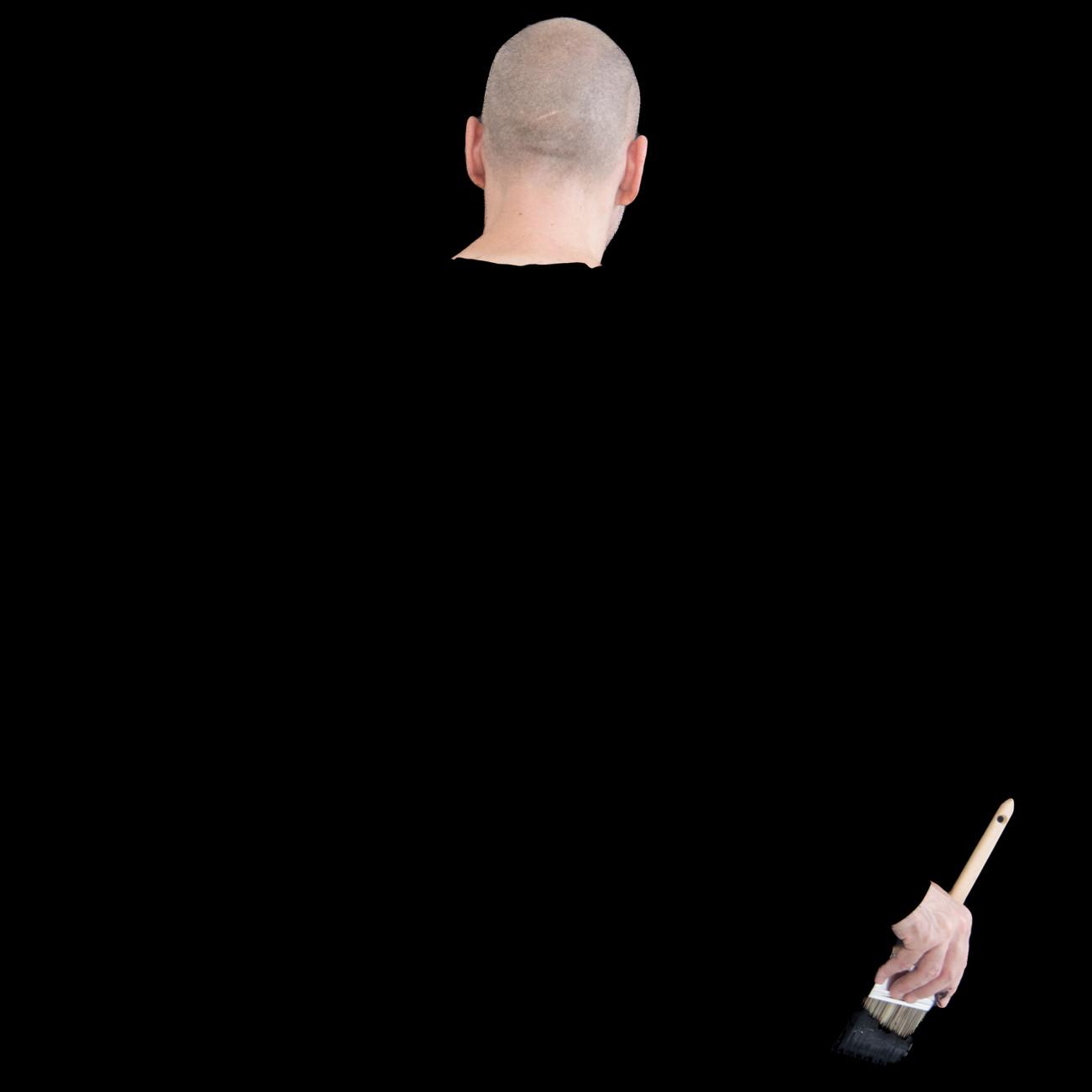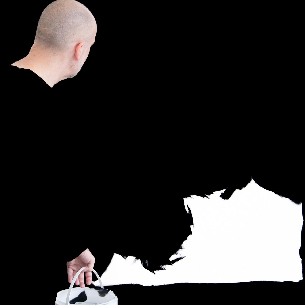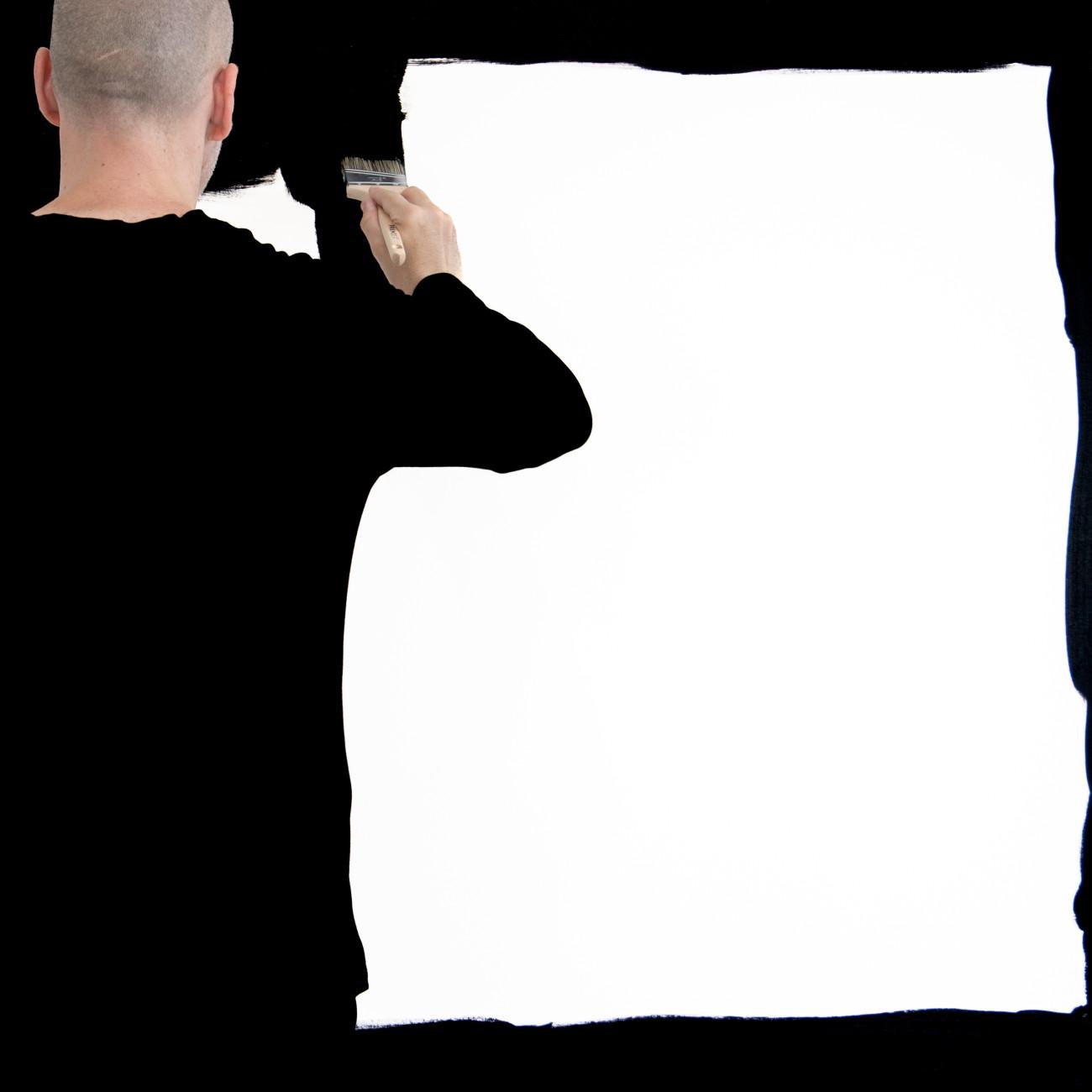 Steve Giasson. Performance invisible n.º 285 (Abstraerse (otra vez)). Reescenificación de Helena Almeida. Salída negra. 1995. Intérprete: Steve Giasson. Crédito fotográfico: Martin Vinette. Retoque fotográfico: Charles-Étienne Lebrun. Galerie B-312. 3 de agosto de 2025.