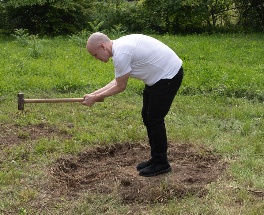 Steve Giasson. Performance invisible n.º 282 (Trazar un círculo). Reescenificación de Circles (1971) de Ulrich Rückriem. Reescenificación de Body Techniques (after Circles, Ulrich Rückriem, 1971) (2007) de Carey Young. Intérprete: Steve Giasson. Crédito fotográfico: Martin Vinette. Asistencia: Félix Hould, Colin Hould, Dominique Vincent y Francis Brabant. Retoque fotográfico: Charles-Étienne Lebrun. 19 de julio de 2025.-