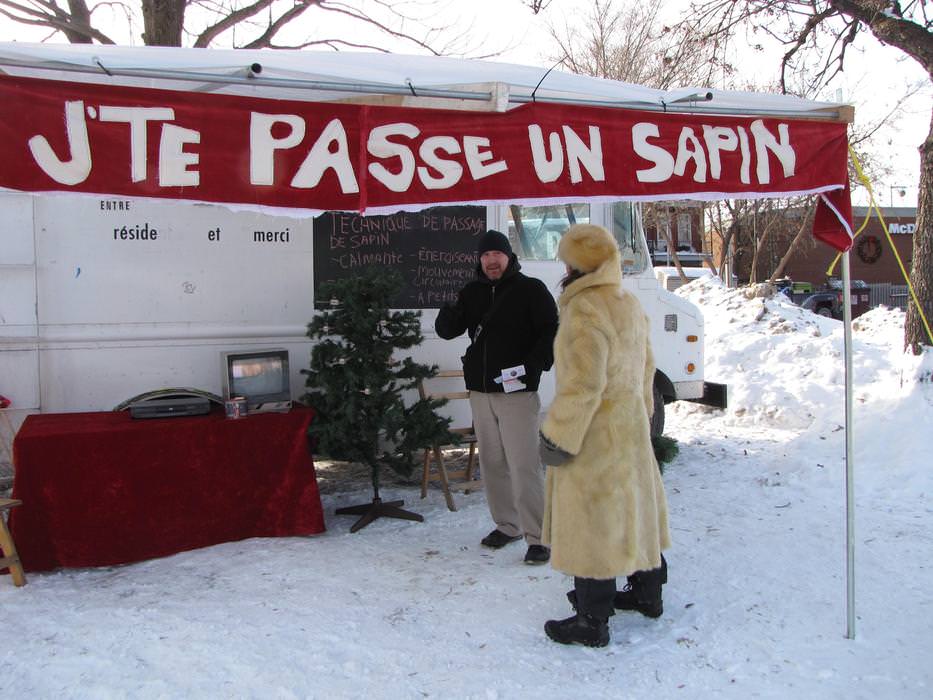 VOX-POP « J’te passe un sapin », devant l’abri mobile de DARE-DARE. Le jeudi 15 et vendredi 16 décembre, de midi à 15 h.