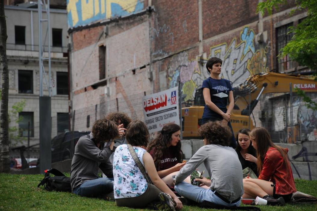 Dans cette affirmation deux conceptions de l’espace public s’opposent. La première, pragmatique, concerne l’aménagement urbain. L’espace public est planifié, aménagé et contrôlé en fonction d’objectifs bien définis. Les pouvoirs publics veulent, notamment, faire des espaces publics des espaces de divertissements, de spectacles afin de positionner la ville sur le plan international et d’attirer à la fois les touristes et les investisseurs[2]. Une conception qui dessine un paysage urbain tel un espace neutre, un canevas vierge pour recevoir de grands événements. La seconde conception, quant à elle, relève de la philosophie politique. L’espace public y est défini comme un espace ouvert à tous dans lequel s’active le libre jeu des différences et des ressemblances de chacun et qui participe à l’ « apprentissage de l’altérité »[3]. Il renvoie davantage à un espace symbolique assimilable à la définition que fait Marc Augé d’un lieu, c’est-à-dire un espace dans lequel les individus s’identifient, nouent des relations amicales ou conflictuelles et « retrouvent les traces diverses d’une implantation ancienne, le signe d’une filiation »[4].L’espace public actuel s’active entre ces deux pôles, quelque part entre cette tentative de contrôler et de sécuriser l’espace et l’expression de la différence, de l’altérité, qui s’exprime notamment à travers les usages que font les individus de ces espaces.