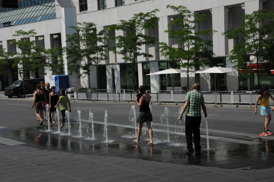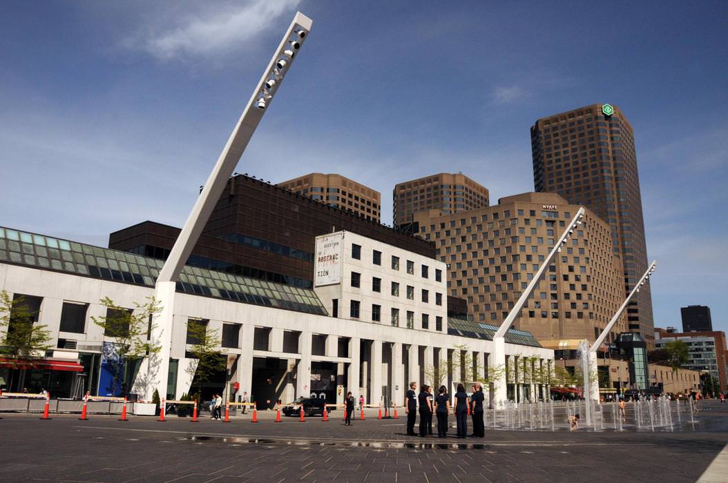 Les places du Quartier des spectaclesLancé en 2005, le Quartier des spectacles constitue un projet phare dans l’urbanisme montréalais, dont la partie principale prévoit la construction d’un système interconnecté de places publiques reliées à la place centrale qui demeure la Place des arts. Ce complexe se compose de la Place des arts, la Place des festivals, la Promenade des artistes, le Parterre et l’Esplanade Clark (en construction). Il s’agit de grandes surfaces vides et dépourvues de tout renvoi mémoriel, historique ou politique, tandis que la présence de commerces et d’organisations proposant une offre culturelle est très forte. La place devient donc un espace thématisé, voué à une typologie d’usage spécifique et ayant une fonction particulière : celle de l’offre culturelle et de sa consommation.