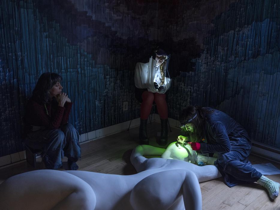 Entre veillée de corps et exposition d'œuvre à la maison, l’événement transdisciplinaire présente trois artistes des mots et des sons interprétant l’histoire du Wounded Healer, atterri dans un appartement d’Hochelaga.