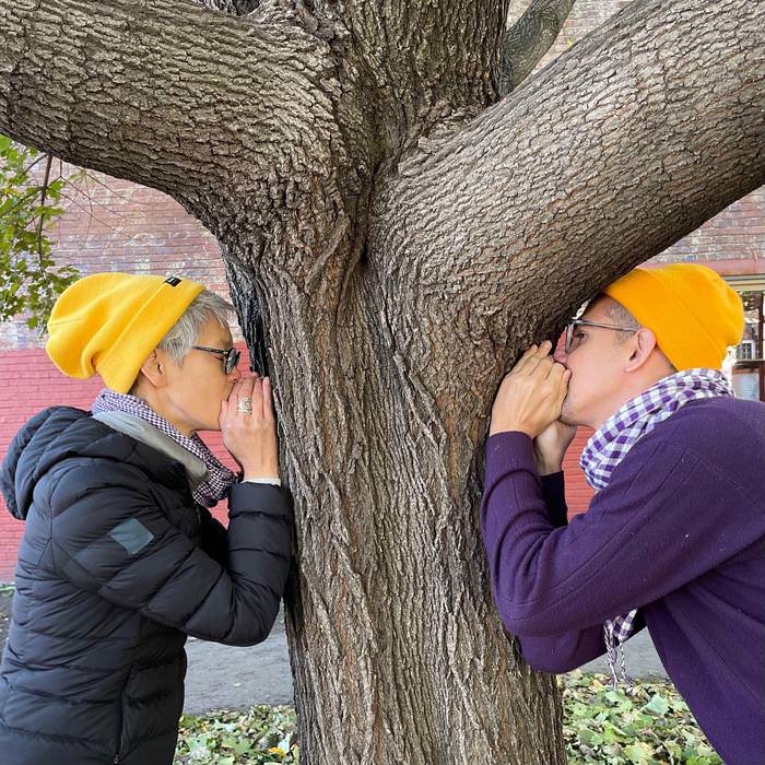 ‹sur la gauche› se trouve l'arbre à secret où vous pourrez murmurer votre(vos) secret(s) dans les fissures de la peau de l'arbre, comme nous le faisons en Asie ;