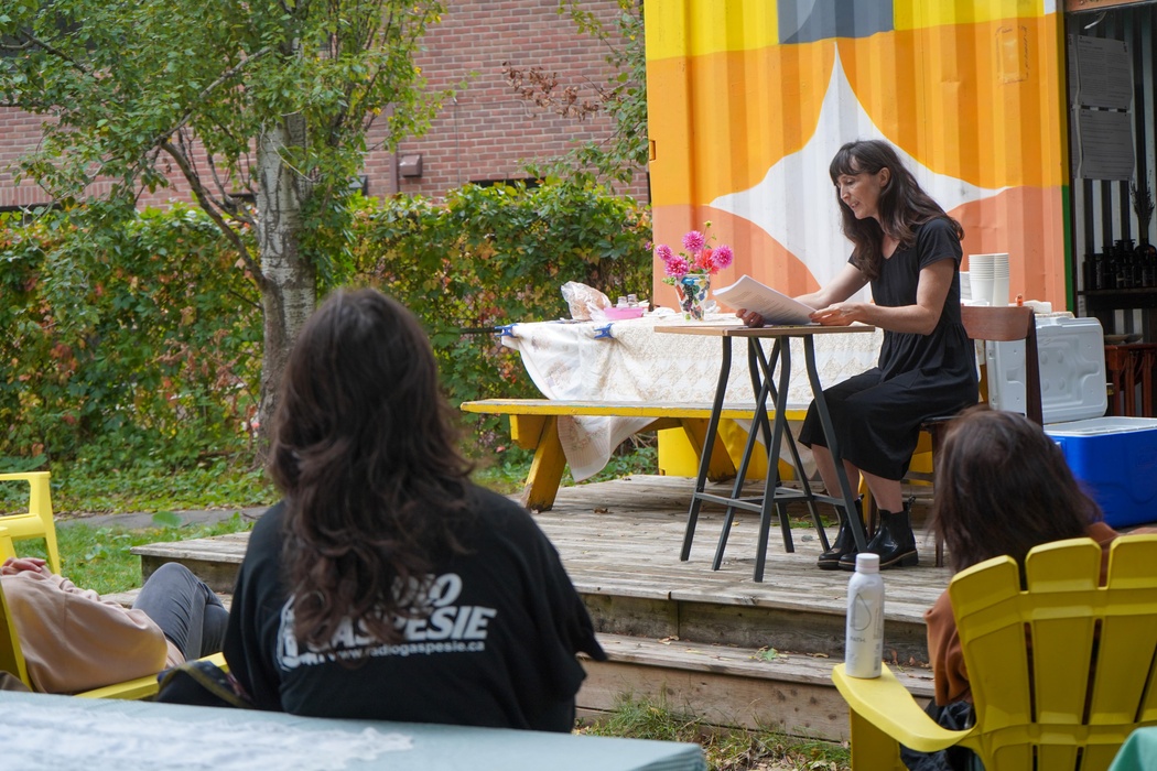 Caroline Loncol Daigneault est une artiste, une auteure et une commissaire qui réside à Canton de Stanstead. Avec une approche délibérément collaborative et fondée sur l’écoute, ses projets sont mus par un désir d’enrichir et de nuancer la nature de nos liens. Elle façonne des situations de création qui cherchent à élargir collectivement les contours des idées reçues sur l'enfance, la vieillesse, la nature ou encore la circulation du pouvoir. Avec cette résidence à DARE-DARE, le commissariat et l’écriture poursuivent leur migration vers la dramaturgie et s’incarnent de manière performative.