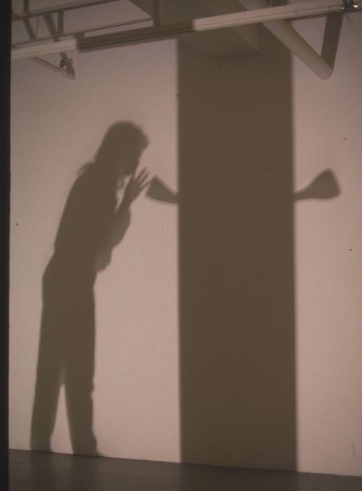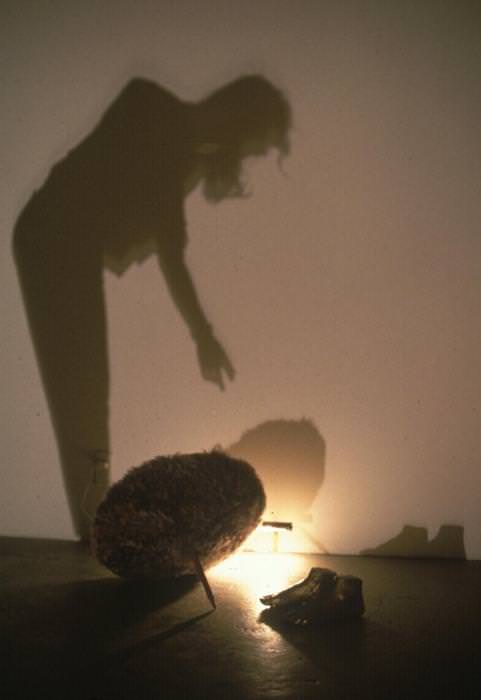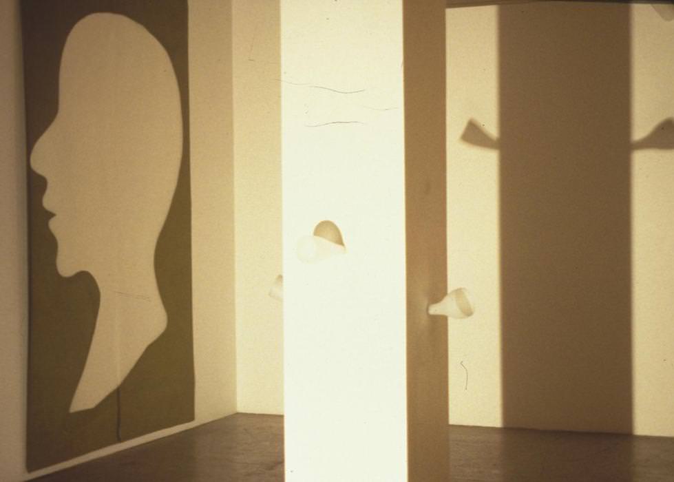 Matériaux: ombres, bois, écran de latex, sources lumineuses variables, objets divers, verre soufflé, papier mylar, feuilles de laurier séchées, diffuseur d'odeur, fourrure, plâtre.