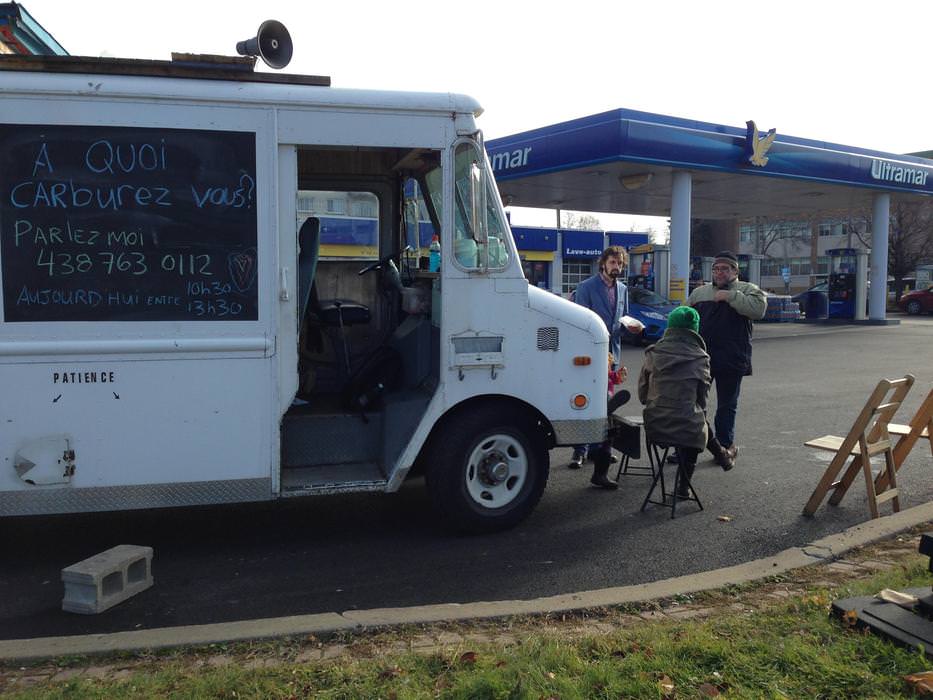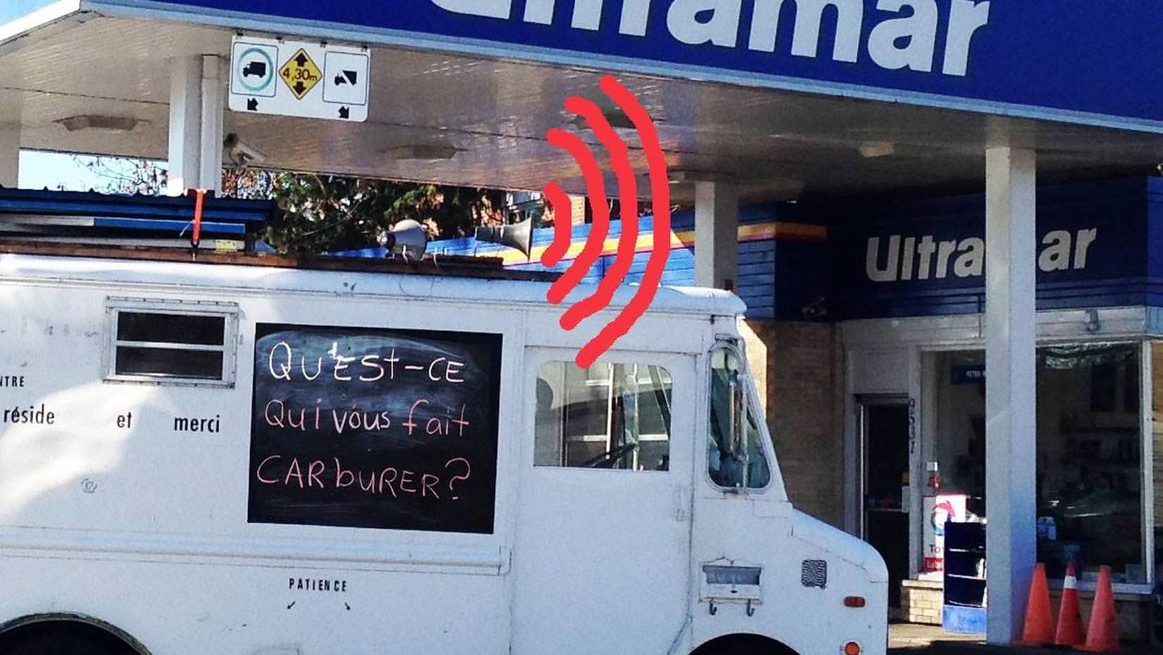 Vox-pop à la station d'essence Ultramar de Verdun. Maggy Flynn a fait une "vox-pop mobile" sur la thématique « Quel type d’essence vous fait carburer ? ». l'artiste sera sur place, pour faire la diffusion des appels tout en dessinant un carburateur 4 barils pour moteur 350.