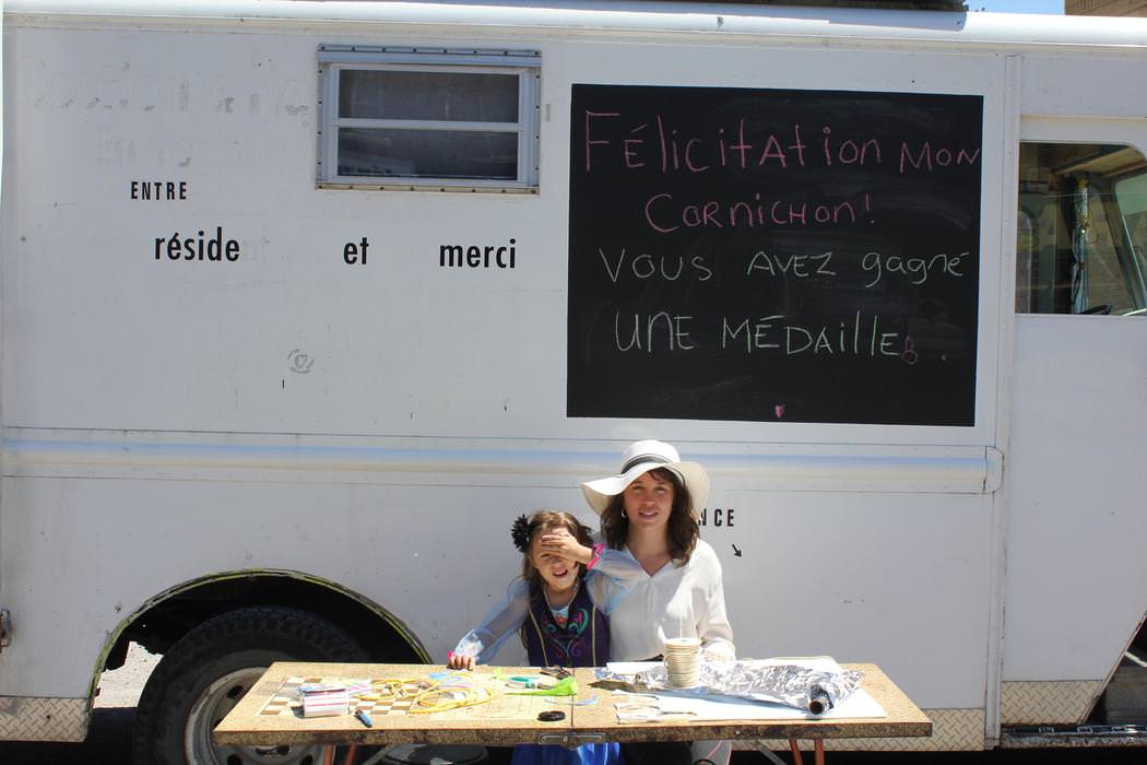 Sur le dessus du camion, deux mégaphones ou on y entendra des chansons d'enfants chantées par ma co-pilote de 6 ans, des sons de rires, des mélodies, de la poésie, des informations en lien avec notre présence.
