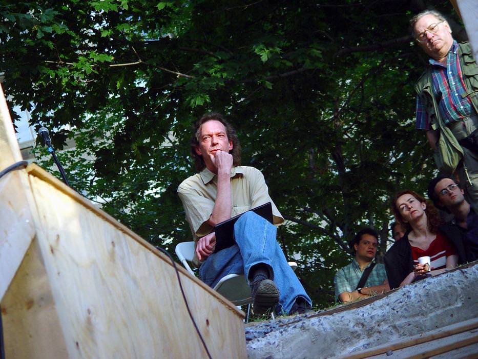 Remblai-déblai, VLAN paysages, soirée de poésie à l'installation extérieure sur la rue Léo-Pariseau au coin de l'avenue du Parc, au bord de l'échangeur