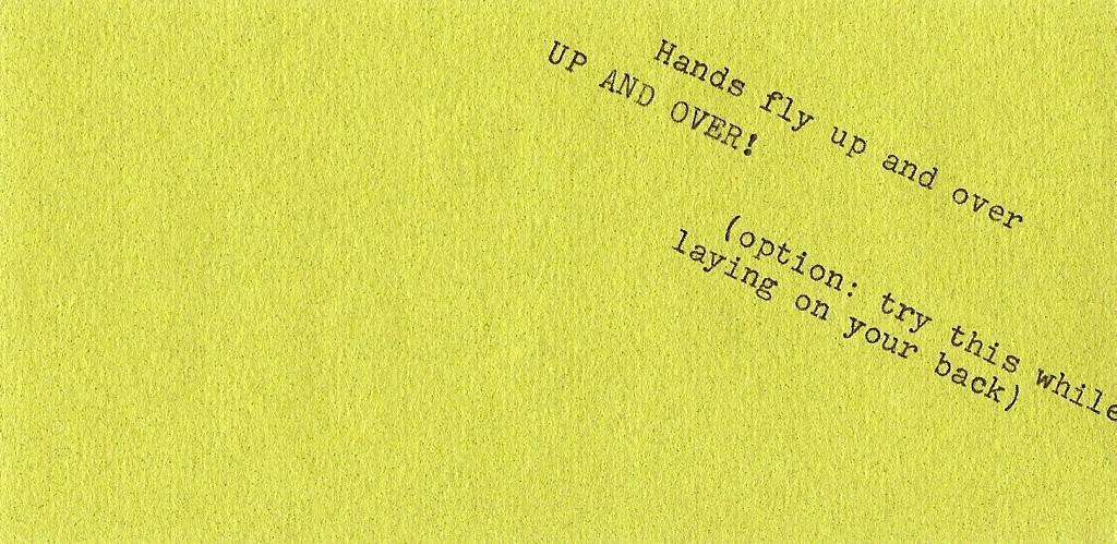 Pendant qu'un paysage sonore est diffusé, une femme affiche des notes sur les arbres de la place Cabot. Tout en considérant l'espace, elle improvise une danse en rapport avec les mots qu'elle a écrits. La performance est une réponse réfléchie à la beauté, à la solitude et à la spontanéité évoquées par un parc.