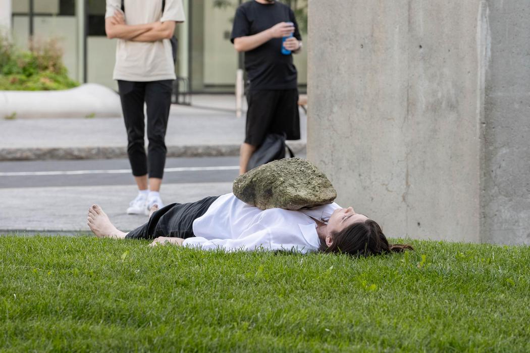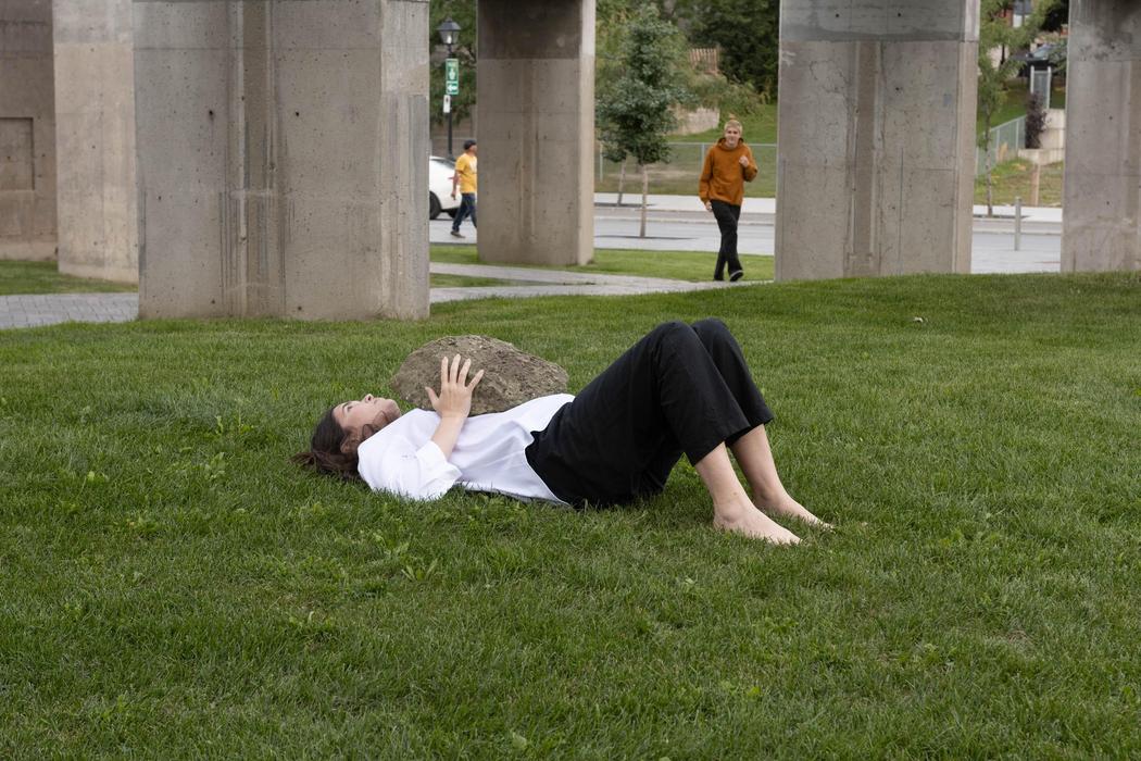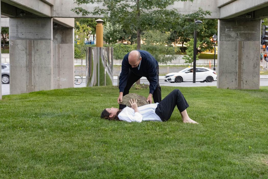 L'artiste d'origine cubaine Paola Martínez Fiterre présente Breathe, une œuvre performative dans l'espace public qui teste l'endurance du corps au poids de son environnement. Pour VIVA!, l'artiste réalise sa performance au Square Viger, au coin St-Denis/St-Antoine.
