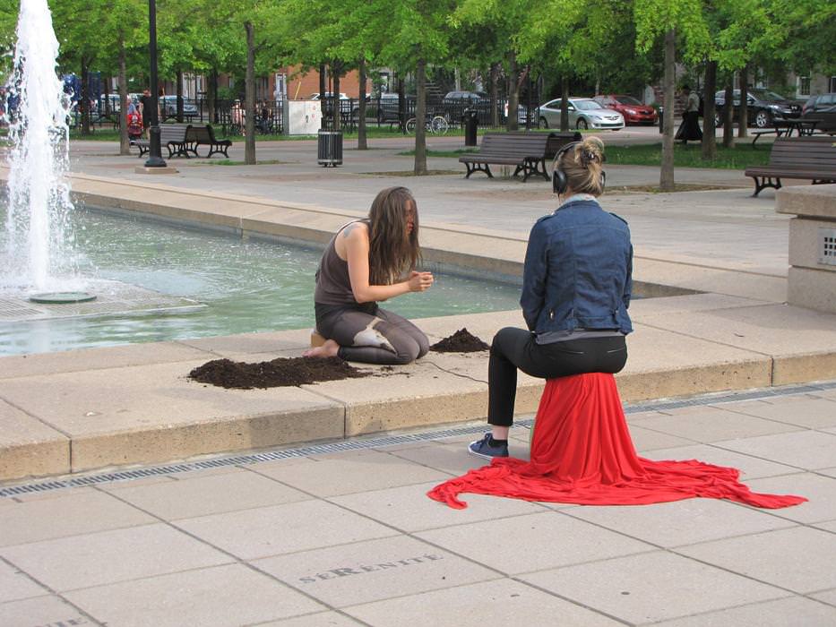 Performative meeting: Allyce Arsenault, Miri Chekhanovich, Marc André Goulet, Sun Launière, Melody Talbot and Catherine Tardif, in collaboration with Caroline Gravel and Karina Iraolaé