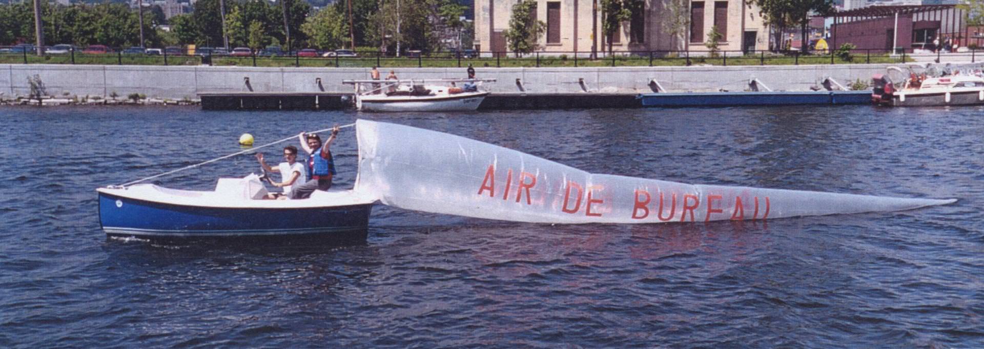 BUREAU© presents during the weekends of July a series of five flying tents and BUREAU installations near the Lachine Canal. Made of plastic materials, these "office tents" inflated by the wind welcome visitors for a nap, a break, a work session, etc.