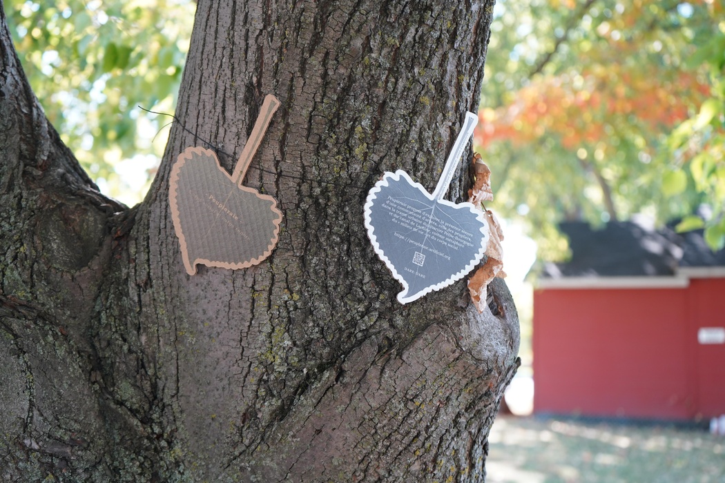 For walkers equipped with a cell phone and headphones, a series of recordings allows them to hear the sound of the wind in the poplar leaves. Through a web interface, the sounds increase in intensity or fade away as the walker approaches or moves away from a geolocated tree. In doing so, their movements also delineate silences that settle in the interstices between trees, allowing other surrounding noises to manifest themselves as they listen.