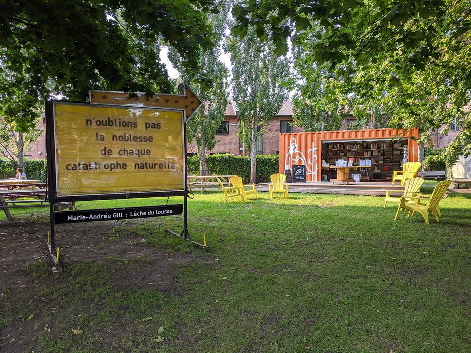 Welcome to our small library whose collection on art in public space covers various themes: living art, poetry, architecture, artists' books. You will even find a selection of children books. While respecting health safety instructions, we invite you to come and visit us with your family, alone, with friends, artists, students or researchers. You can hang out there to read a book or to discuss with our new cultural mediator, Alfred Muszynski. La HALTE is open until October, Thursday to Sunday from 1 p.m. to 7 p.m.