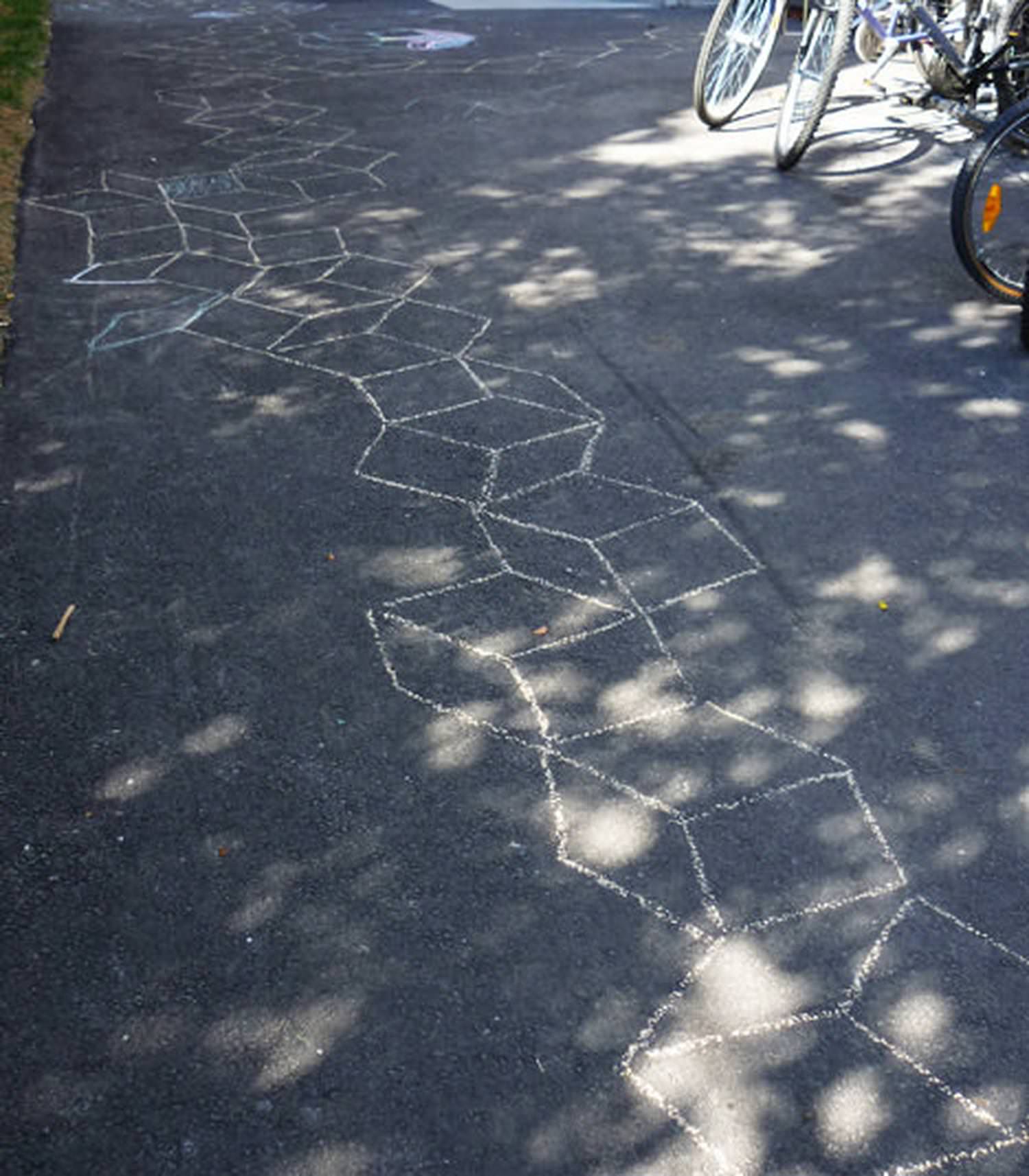 The action of drawing brings new ideas, forges connections. To take a piece of chalk and draw designs on the cement is to make the decision to live in the moment, to be open and available to the contingencies of the terrain, weather and people around us.