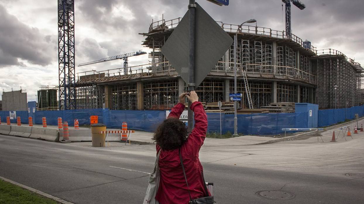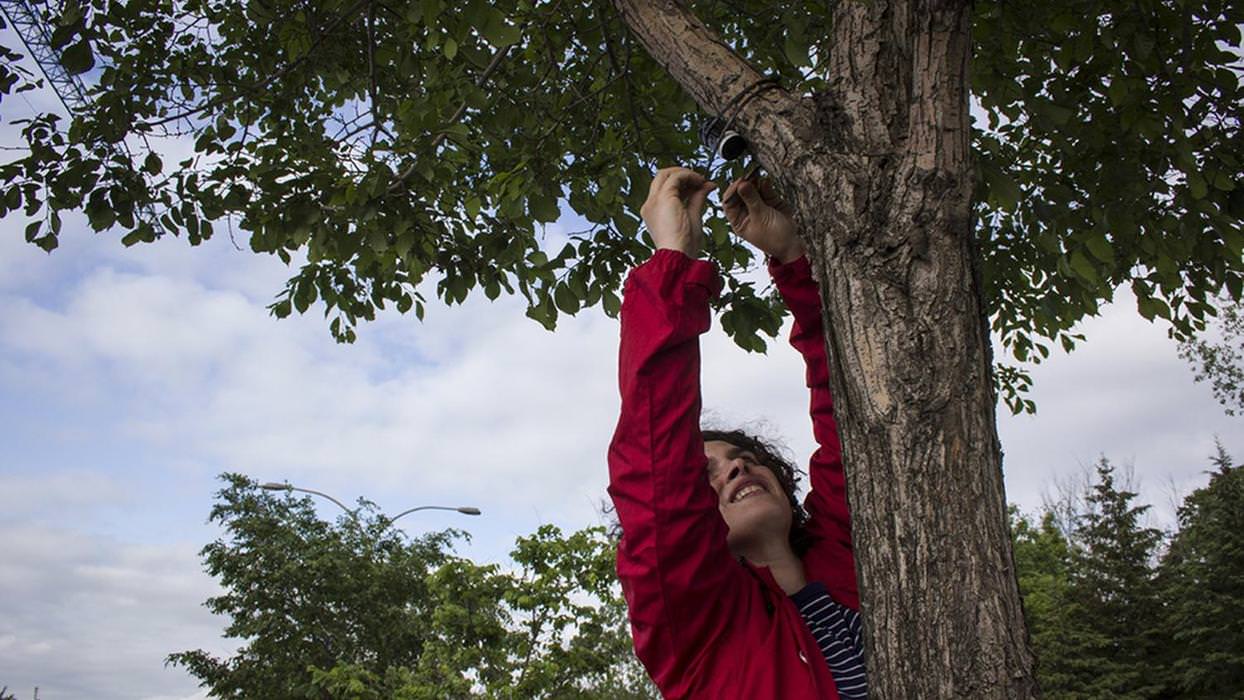 DARE-DARE and Verticale — centre d’artistes join forces to produce a project by Janie Julien-Fort, Sites under Surveillance. The artist makes use of a technique called solargraphy—a photographic process requiring exposure times that often span several months. Attached to various landscape elements, at the mercy of the weather and attracting the curious, hundreds of small pinhole cameras scrutinize the outskirts of several construction sites. Serving as makeshift surveillance cameras, they are installed according to various project time lines, as published by the Cities of Laval and Montreal. The images obtained are rigorously indexed, mapped and documented before being disseminated online. The traces left by the sun’s trajectory leave streaks on the image, thus permitting to calculate the passage of time.