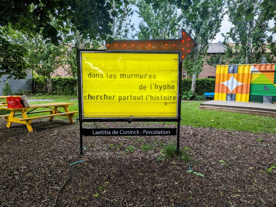 The Percolation public writing project was created from an investigation of/with Parc Sainte-Cunégonde, where knowledge and experiential knowledge are distilled and incorporated to create short texts in a geopoetic approach, an approach to places that is both sensitive and poetic.