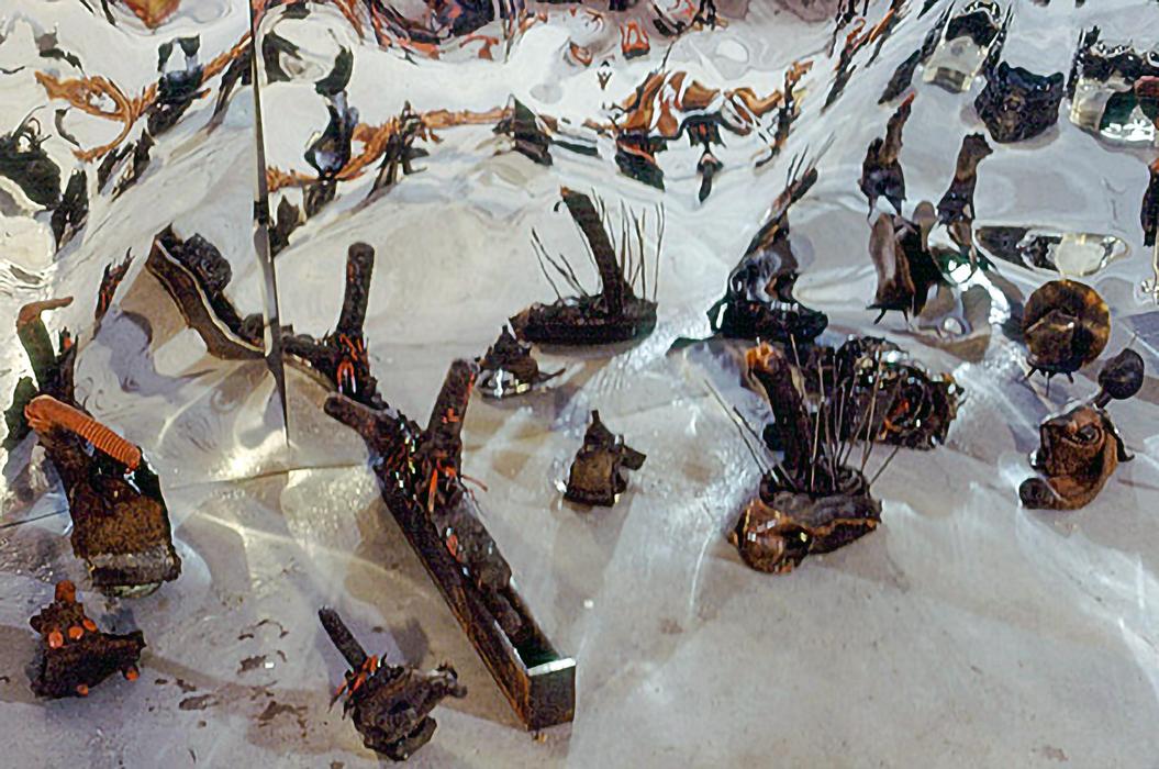 The parasites were born in 1992, out of a space restriction imposed by the curator of a group show. They are from the "Série des objets vic(s)ieux", since they are created with latex screw imprints. At this point they include found rubber pieces. The ecological import of the creative act is therefore preserved.