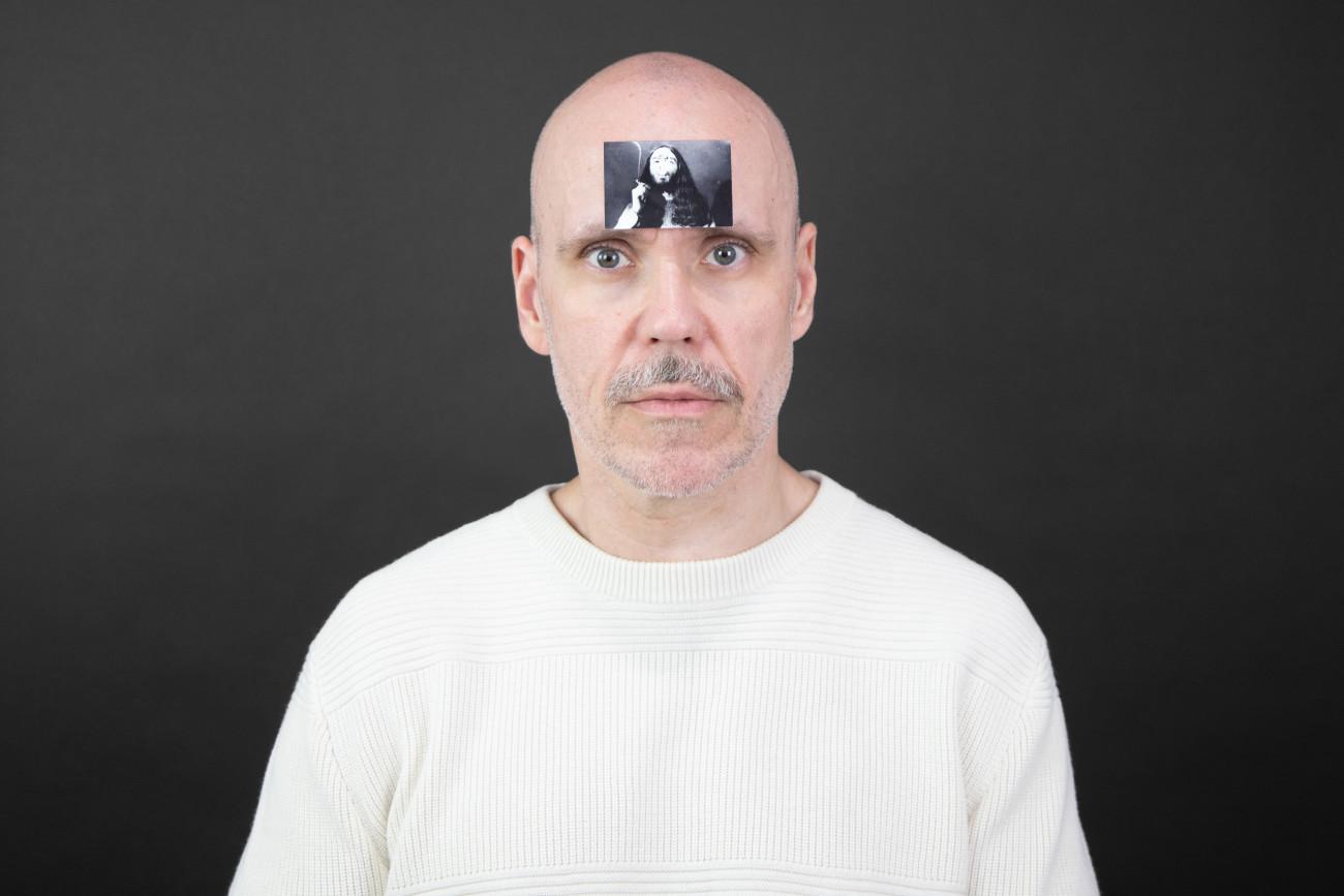 Steve Giasson. Invisible Performance No. 267 (Being Hollow). Reenactment of Ľubomír Ďurček. Hlava v Pravde [Head in Pravda / Head in Truth]. 1989. Performer: Steve Giasson. Photographic credit: Martin Vinette. Mask: Geneviève Dagenais. Photo retouching: Charles-Étienne Lebrun. SKOL Centre for Contemporary Art. July 28, 2024.-