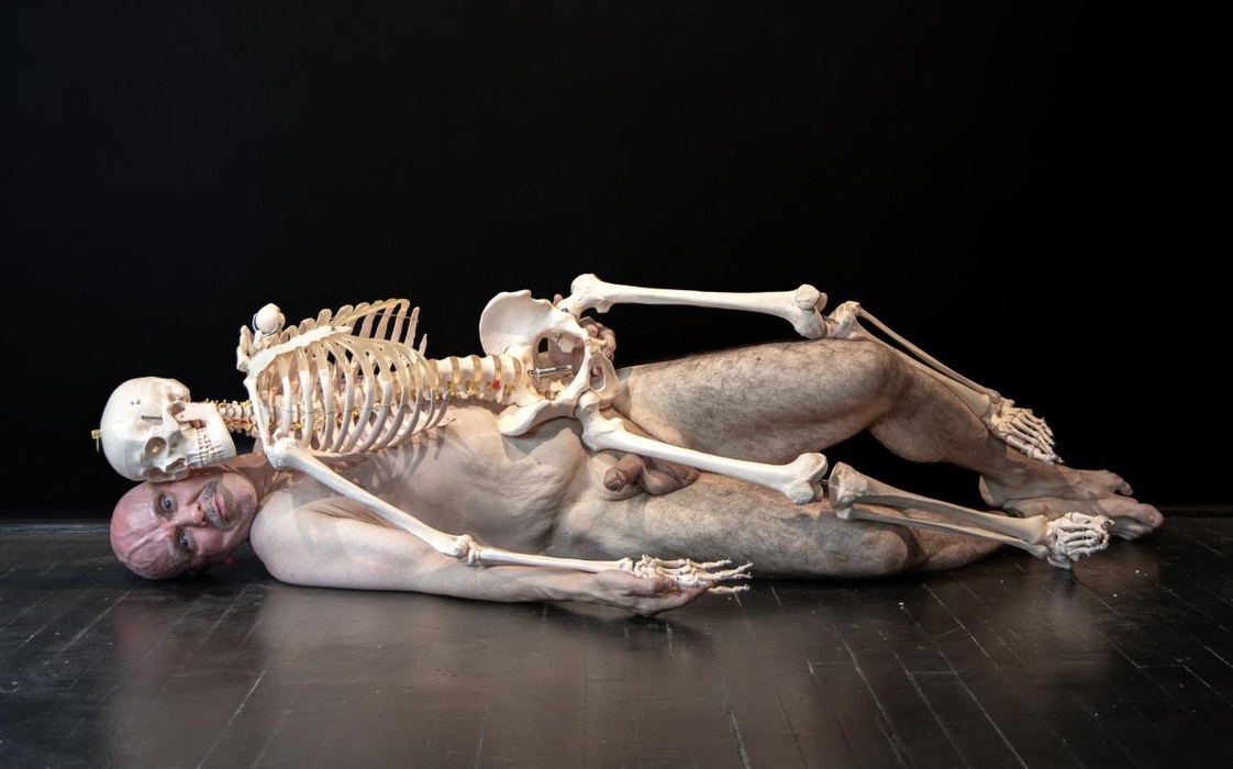 Steve Giasson. Invisible Performance No. 298 (Being Loyal to the Nightmare of One’s Choice). Reenactment of Marina Abramović. Self Portrait with Skeleton. 2003. Performer: Steve Giasson. Photo credit: Martin Vinette. Photo retouching: Charles-Étienne Lebrun. SKOL Centre for Contemporary Arts. August 10, 2025.-