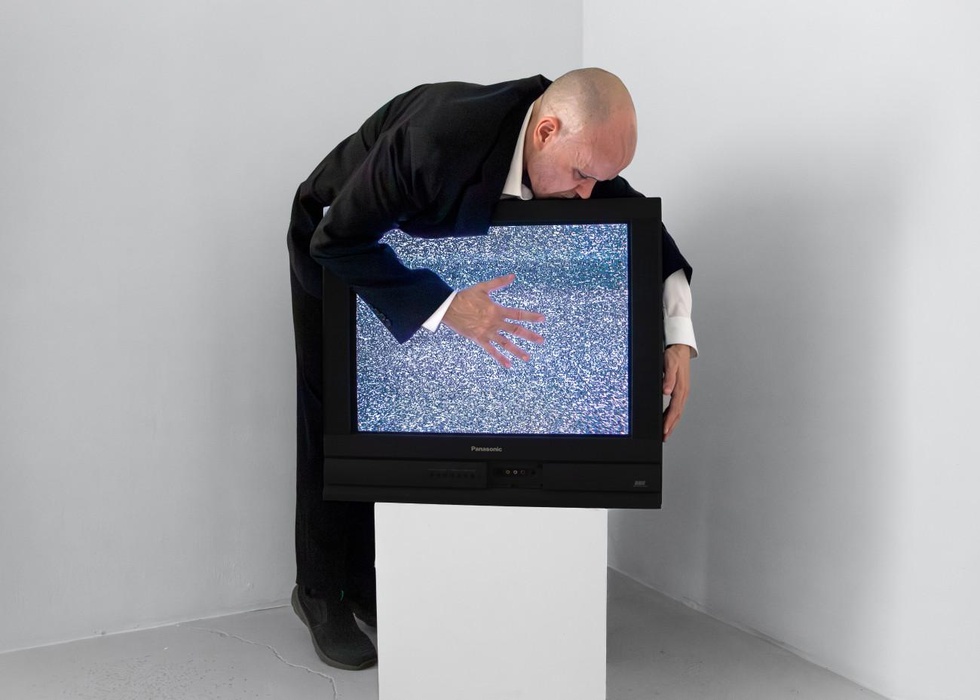 Invisible performance no. 260. Predicting the past / being absolutely modern. For Jean-Michel Quirion. Reenactment of Erwin Wurm. Sigmund freud modern (one minute sculpture). 2005. Photography: Martin Vinette. Photo retouching: Charles-Étienne Lebrun. Galerie b-312. August 9, 2025-