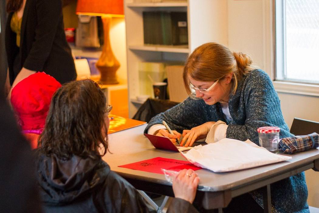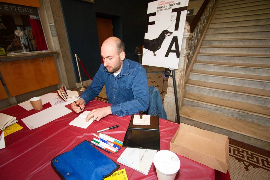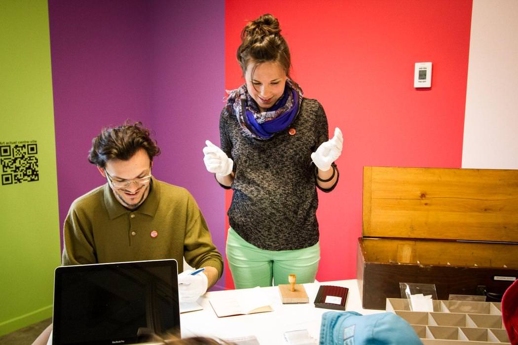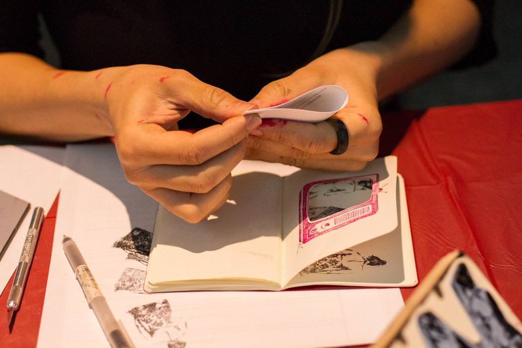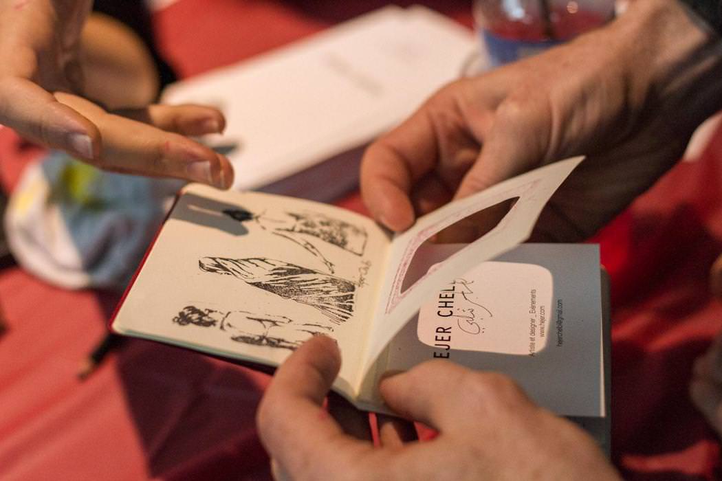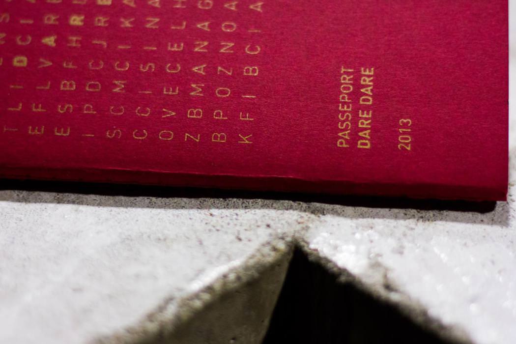 PASSEPORT DARE-DARE is a fundraising activity that encourages collaboration between commercial and artistic communities within the visual art community. Blank booklets, “Passports”, special designed and hand printed for the occasion are sold at a pre-sale price of 20$, and 25$ the day of the event. Participants are then invited to wander around DARE-DARE's head office, through various commercial and artistic spaces, where they collect “stamps” from the artists.