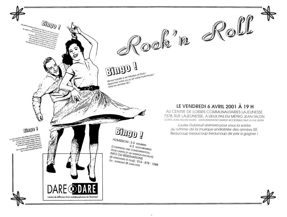 Ven a jugar al bingo benéfico DARE-DARE en el Centre de loisirs communautaires Lajeunesse. Louise Dubreuil animará la velada al ritmo de la música de los años 50. Podrás ganar muchos muchos muchos premios.