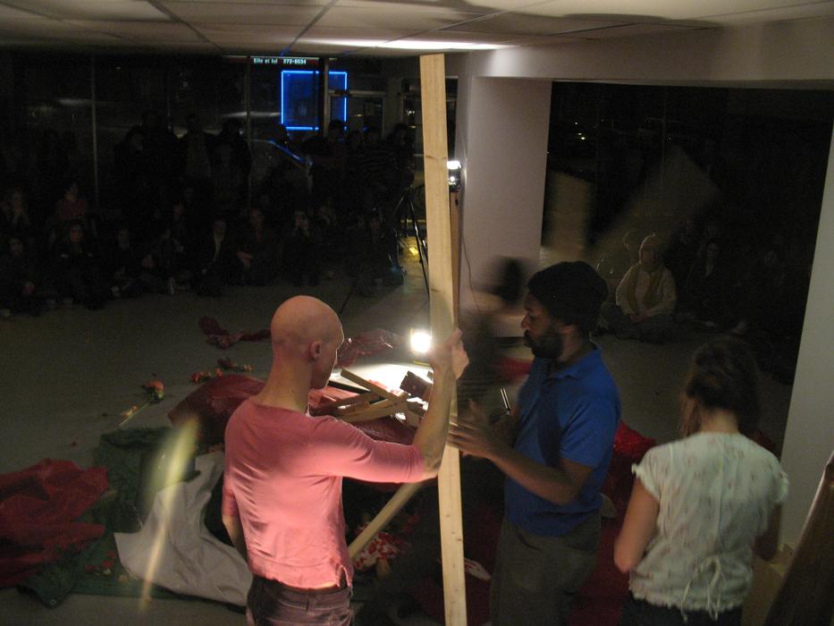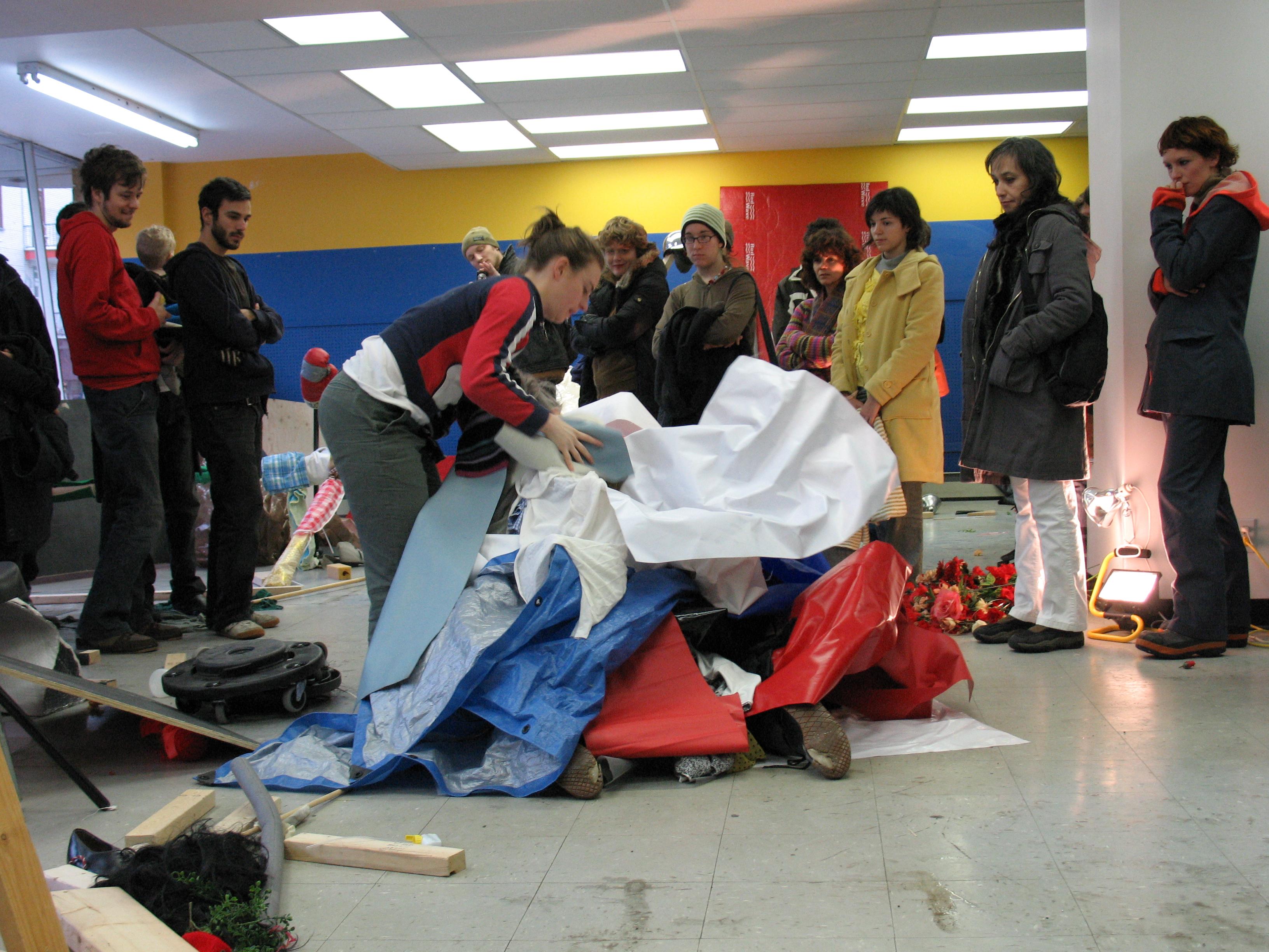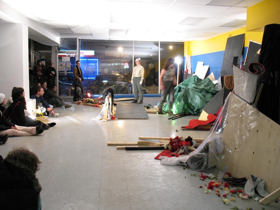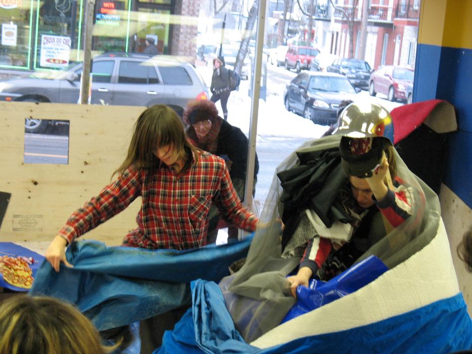 Caroline Dubois y Julie Favreau construirán varios decorados y situaciones que sugieren la próxima apertura de un negocio o un plató de cine. Plan d'aménagement tiene lugar en un local comercial vacío de la calle Beaubien, en Petite-Patrie.