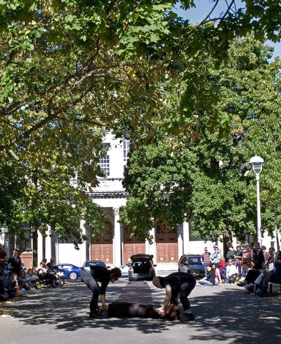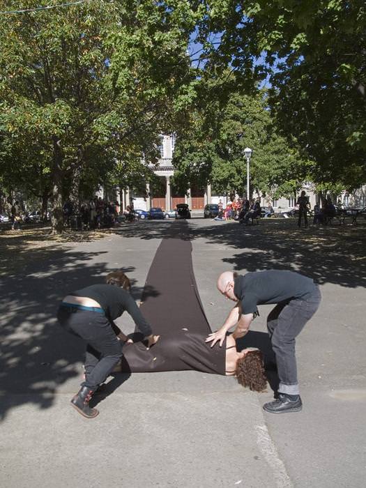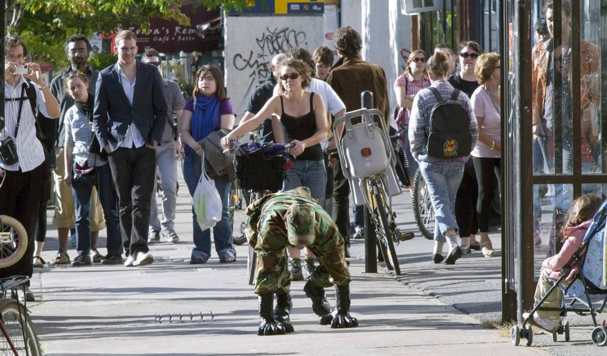 DARE-DARE presenta una serie de actuaciones en el espacio público para crear un diálogo con la comunidad. Situada en el barrio de Ville-Marie, DARE-DARE ha optado por ofrecer una serie de actuaciones que reúnen vídeo, sonido e intervenciones urbanas. Este programa multidisciplinar pretende presentar un amplio espectro de prácticas performativas, permitiendo el diálogo entre diferentes visiones de la performance, ya sean más lúdicas o políticas.