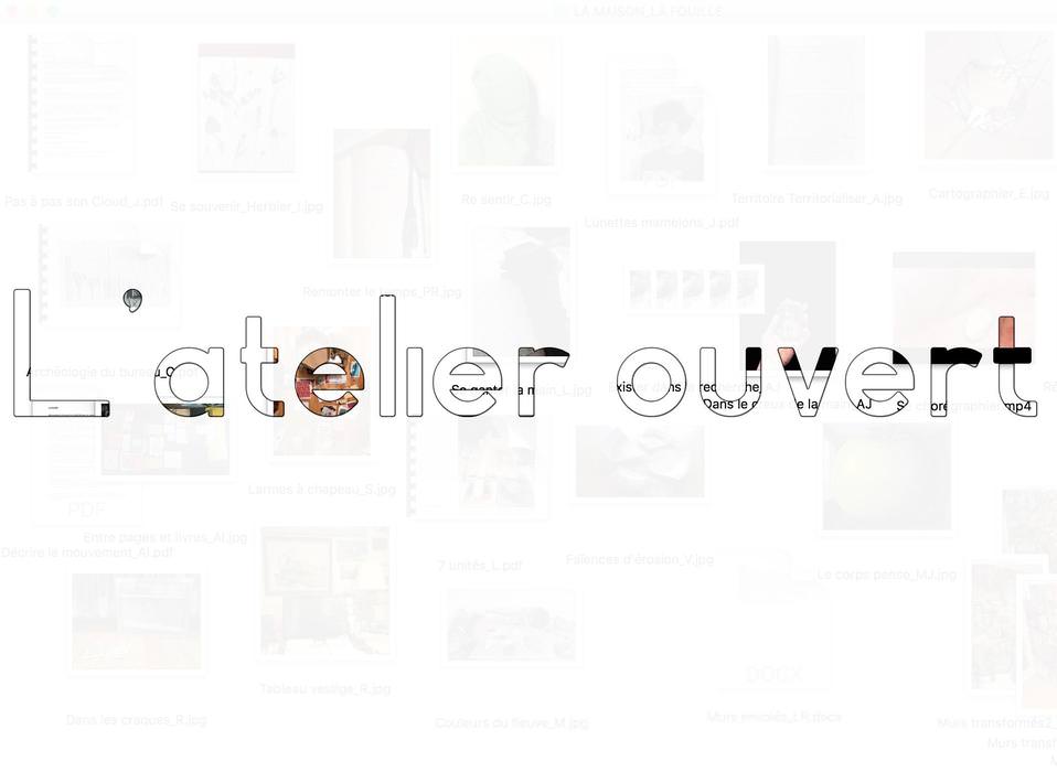 Une page-nuage, logée sur le site de Dare-Dare et dédiée spécialement au projet Atelier ouvert fut mise en ligne. Sur cette page secrète, dont l’accès était réservé aux participant.e.s uniquement, étaient partagés de façon journalière, les résultats des exercices. Différents formats étaient acceptés: images, vidéos, capsules sonores, textes. Classés par date et par exercices, lesdits résultats étaient ainsi consultables par tous les participants, dès leur mise en ligne. Étant donné l’enthousiasme des participants, un grand nombre de partages fut effectué et les deux artistes durent effectuer un tri des résultats. En raison du poids et de la taille des média, seule une sélection des éléments partagés furent publiés sur la page-nuage. La sélection permettait toutefois d’apprécier la diversité des gestes et des actions posées par les participants.