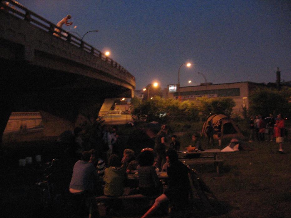 Évènement à la fois festif et communautaire, le camping Aux bons plaisirs fugaces proposera diverses activités participatives sous le viaduc Rosemont: randonnées pédestres, repas collectifs, sérigraphie, projections, musique et création d’un ciel étoilé…