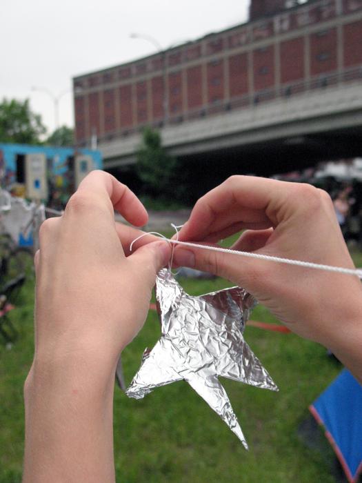 Atelier de fabrication d’étoiles sur le site. Installation d’un ciel étoilé pour les campeurs et les visiteurs.
