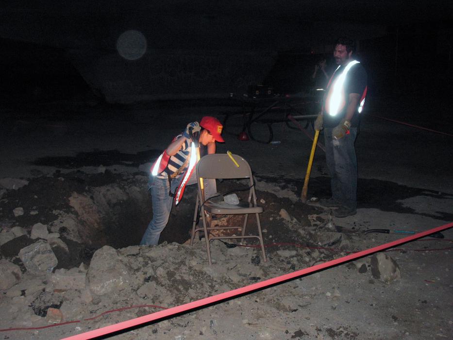 Série de performances construites sur quatre jours ayant comme projet la création d’un souterrain, son inondation et son éventuelle inauguration.