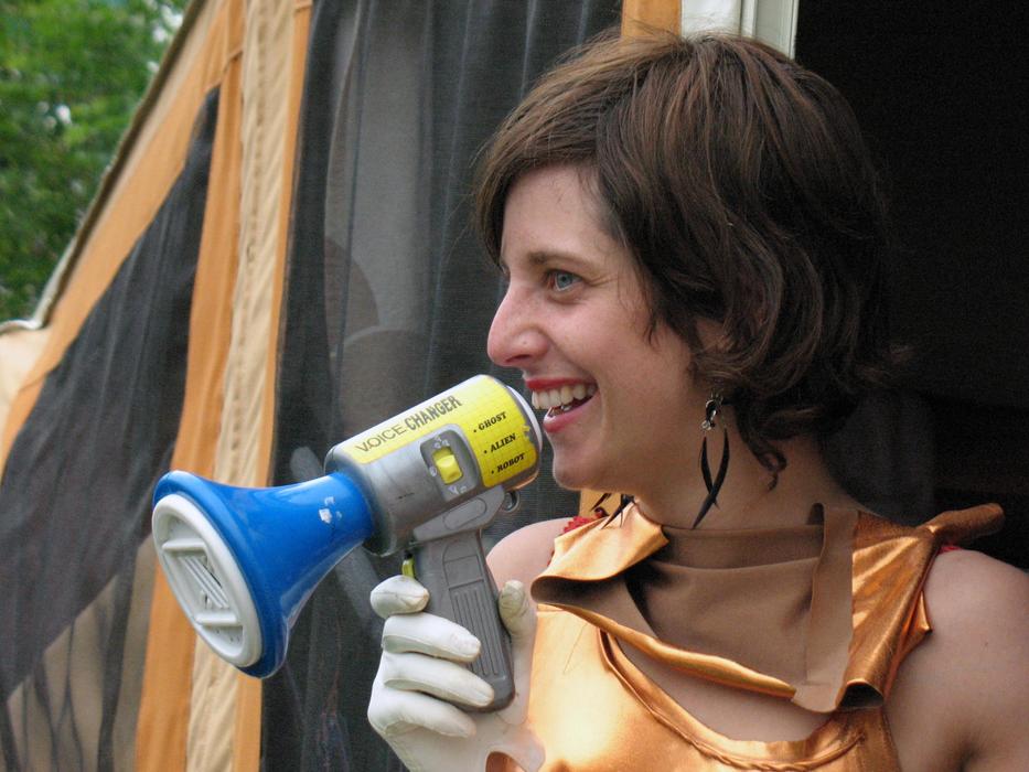Installation d’une tente-roulotte dans le parc. Performances et mises en scène autour de la demeure mobile. Appel à la séduction avec porte-voix. Party de saucisses le dimanche de clôture.