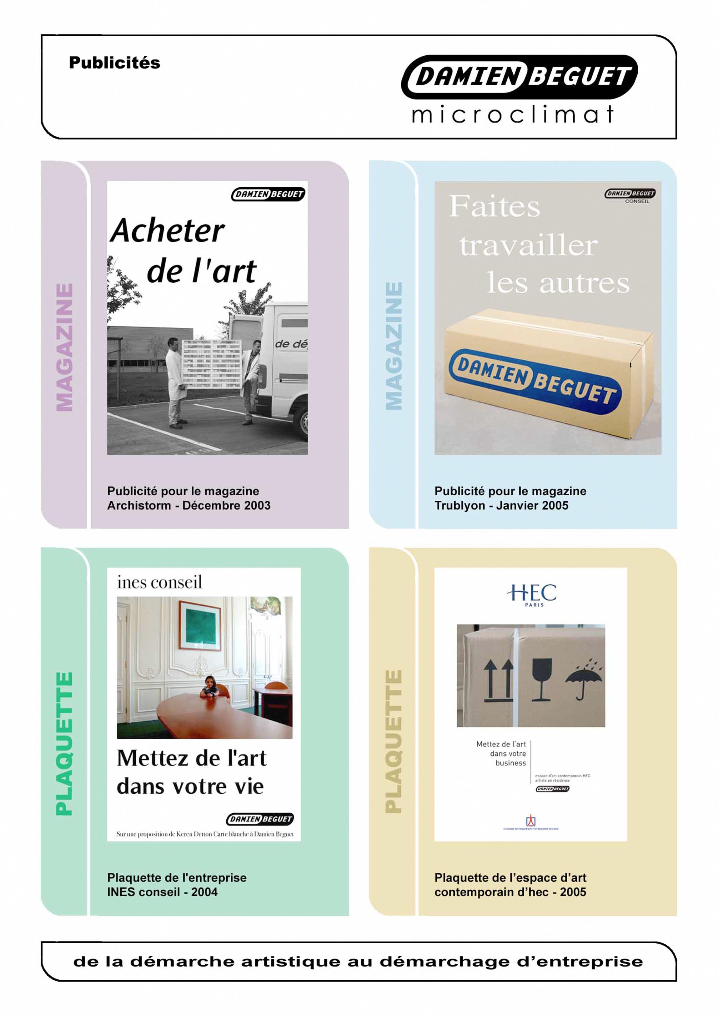 Sous l’appellation DAMIEN BEGUET micromat, Beguet se présente comme un entrepreneur et se réapproprie à des fins artistiques l’esthétique industrielle et les logiques de marketing. (logo, publicité, objet promotionnel, mascotte, sous-traitance, coproduction, parrainage, rachat de faillite, etc. …) Beguet a collaboré avec des entreprises comme le groupe d’hôtellerie Accor et avec la compagnie agroalimentaire Whaou. Dernièrement, il a acheté par contrat la signature, les archives et la production de Ludovic Chemarin (artiste qui a cessé sa pratique en 2005) afin d’obtenir la licence d’exploitation exclusive de l’oeuvre de ce créateur.