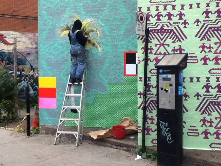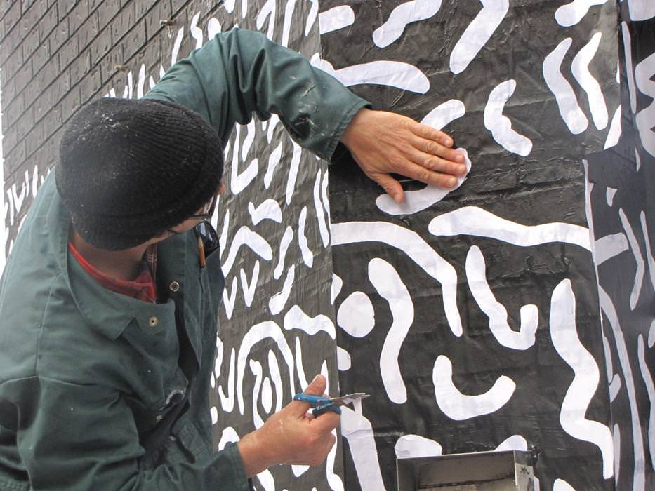 Ce projet monumental de l’artiste visuelle Dominique Pétrin consiste à recouvrir de papier imprimé et découpé la surface extérieure de l’immeuble des Katacombes. Cette installation éphémère est réalisée à partir d’impressions sérigraphiques originales conçues par l’artiste.