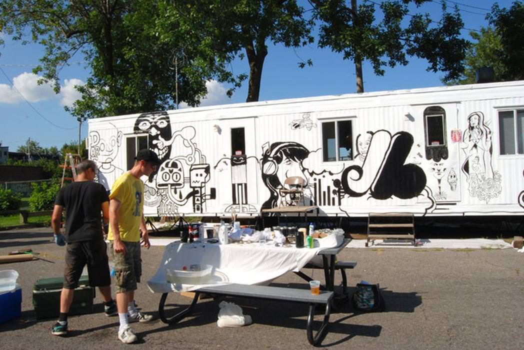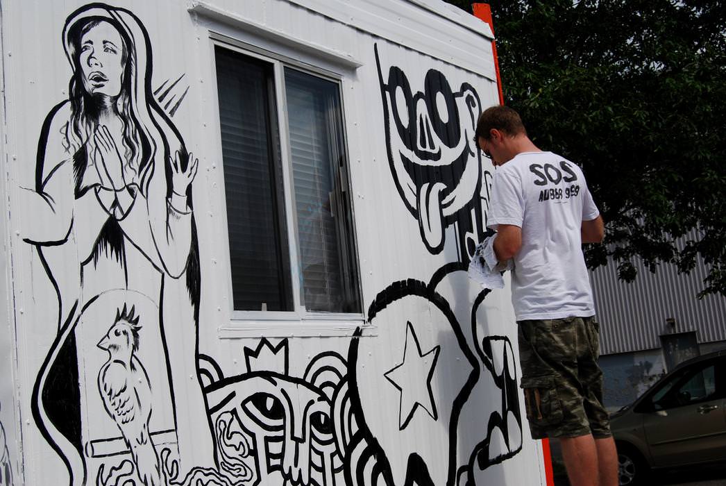 Le projet GRAF’Roulotte consiste à réaliser une œuvre murale collective sur les surfaces extérieures de l’abri mobile de DARE-DARE. Pour ce faire, DARE-DARE a approché deux organismes communautaires – Oxy Jeunes et Innovation Jeunes – qui ont pour mandat de donner accès à la pratique artistique et à la culture comme levier d’épanouissement et d’inclusion sociale à une clientèle adolescente, ainsi que le collectif d’artistes professionnels EN MASSE qui agira à titre de médiateur culturel et mentors auprès de 10 participant.e.s sélectionné.e.s.