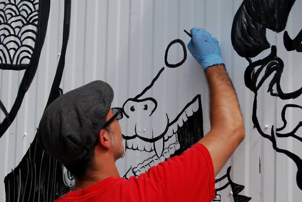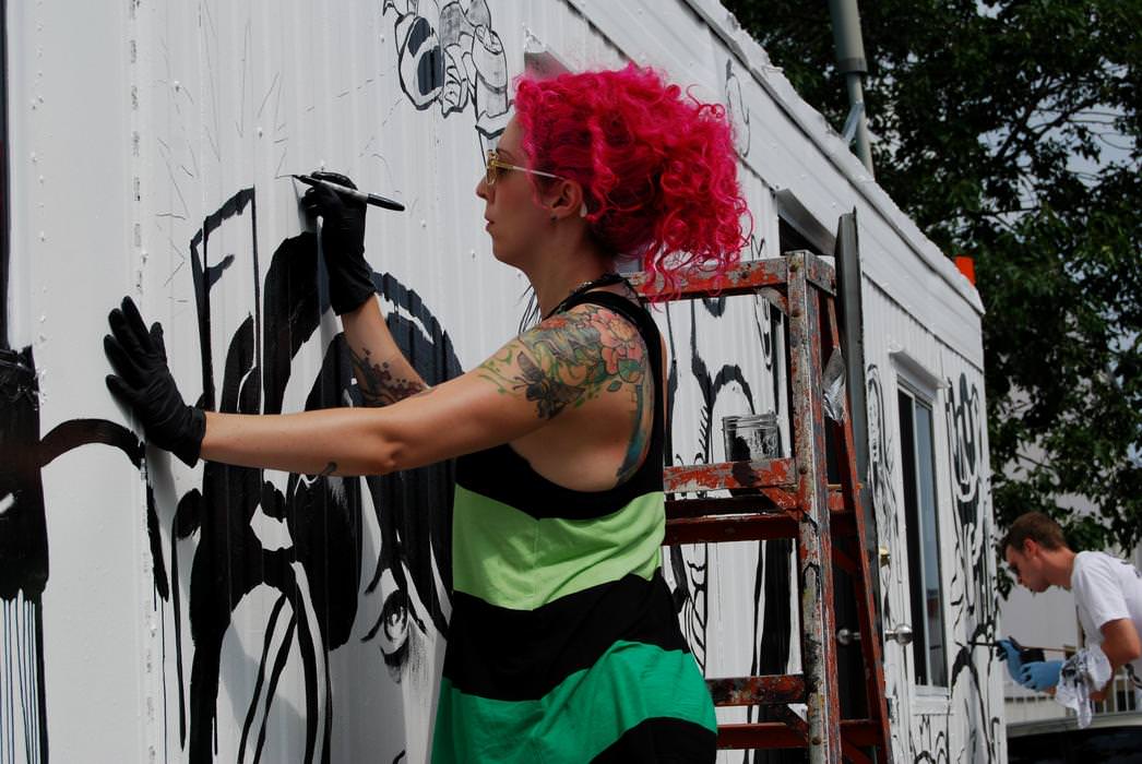 Le projet consiste à réaliser une œuvre murale collective sur les surfaces extérieures de l’abri mobile de DARE-DARE.