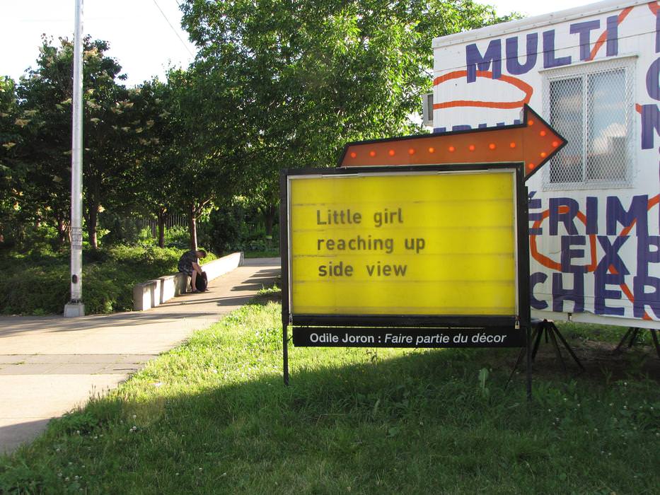 Les descriptions proposées sont donc 10 exemples de recherches Google que j’ai effectuées. Dans le cadre du volet d’Écriture Publique, les individus décrits ont été soustraits du contexte dans lequel ils ont été pris en photographie. À travers l’imagination du passant qui lira leur description, ces personnages seront matérialisés à nouveau dans un contexte différent, soit celui de l’espace entourant la roulotte de DARE-DARE, comme si cet espace devenait une perspective grandeur nature."