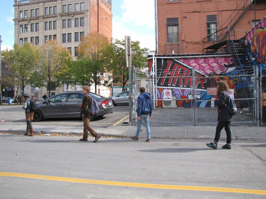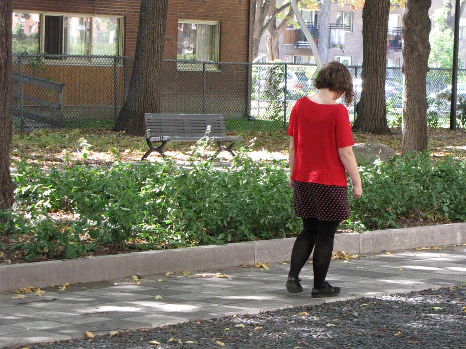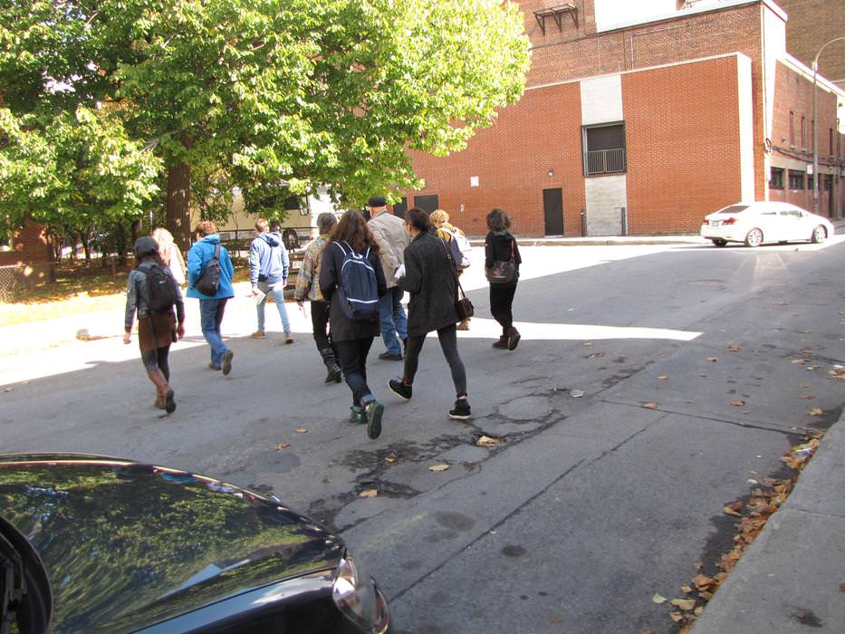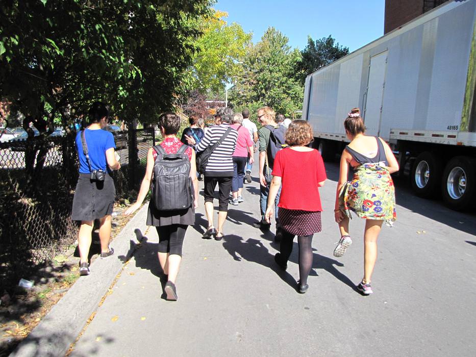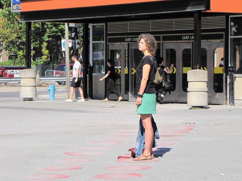 Le projet de recherche En marchant se penche sur la marche comme processus et pratique artistique. En quoi la marche contribue-t-elle au processus créatif ? Comment comprendre la marche comme forme d’art ? Comment l’interaction avec l’espace public influence-t-elle les pratiques artistiques de la marche ? De quelles façons l’environnement urbain se fait-il source d’inspiration, de distraction ou peut-être même d’intimidation ? Plus spécifiquement, quelles expériences les femmes artistes vivent-elles quand leur art implique la marche, implique de « faire la rue »?