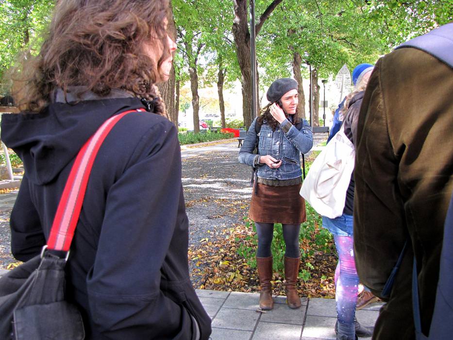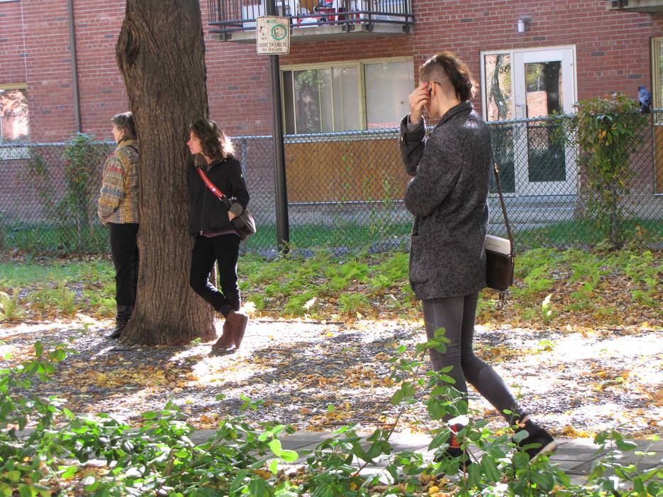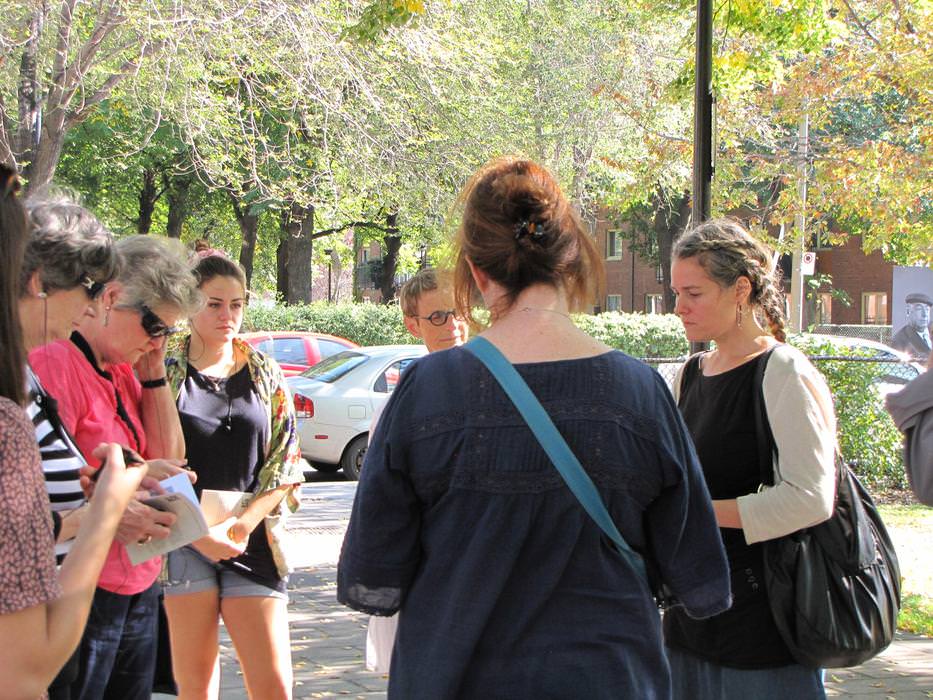 Pohanna Pyne Feinberg (artiste/éducatrice/commissaire) marche souvent, pour ouvrir et calmer son esprit. Sa pratique audio-visuelle est stimulée par la présence de l’extraordinaire dans l’ordinaire et se veut la transcription de l’impermanence, de la résonance et de la compassion. Depuis dix ans, elle a conçu des programmes éducatifs pour plusieurs organisations artistiques et culturelles ainsi que pour des institutions où elle enseigne. En 2009, elle a fondé le webzine InspireArt.org, avec l’objectif de sensibiliser le public envers l'art communautaire de la région montréalaise. En 2011, son projet de commissaire [in - tur - pri - tey - shuhnz] a exploré les croisements entre l'art contemporain et l'histoire orale. Elle a complété sa maîtrise en histoire de l'art et est actuellement étudiante au doctorat en enseignement des arts. Sa recherche porte sur la marche comme processus et pratique artistique.