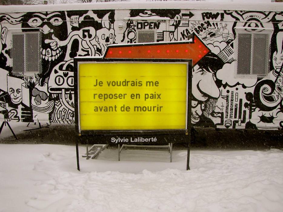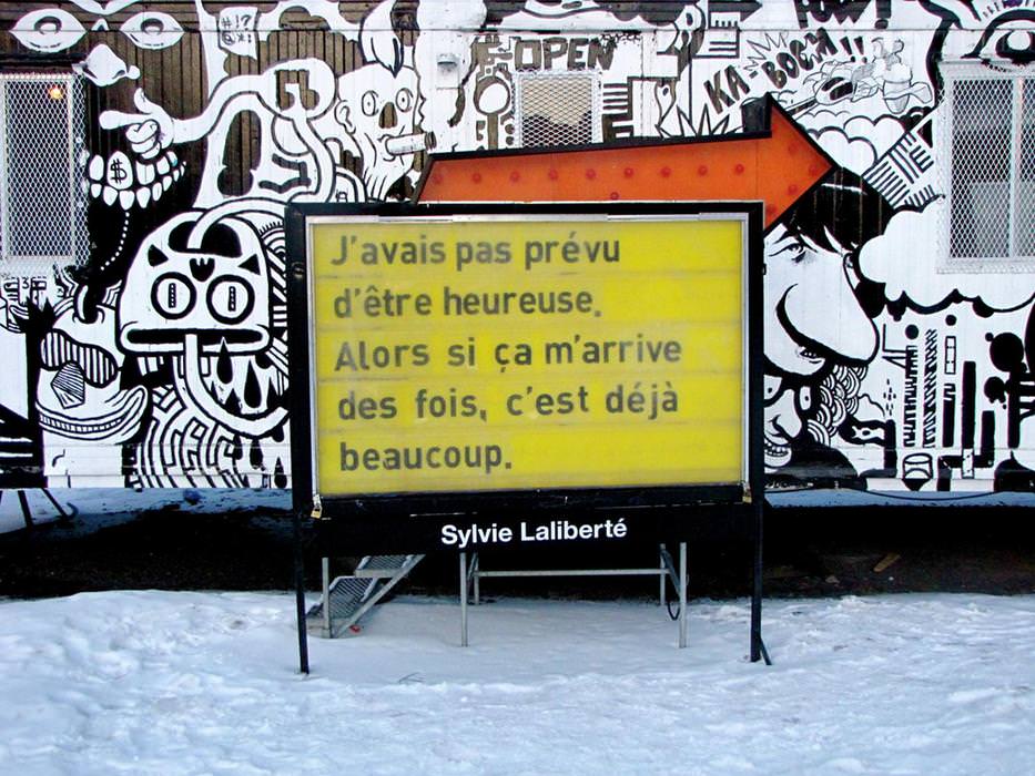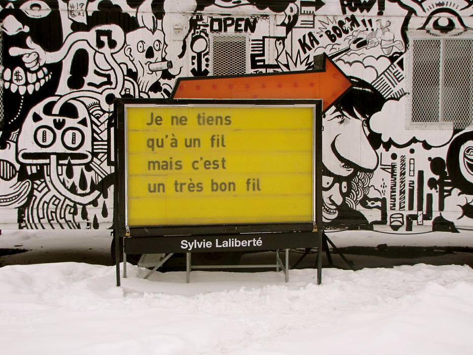 Sylvie Laliberté a commencé son travail par l'art de la performance en 1985, pour ensuite étendre sa pratique à la vidéo et l'écriture.